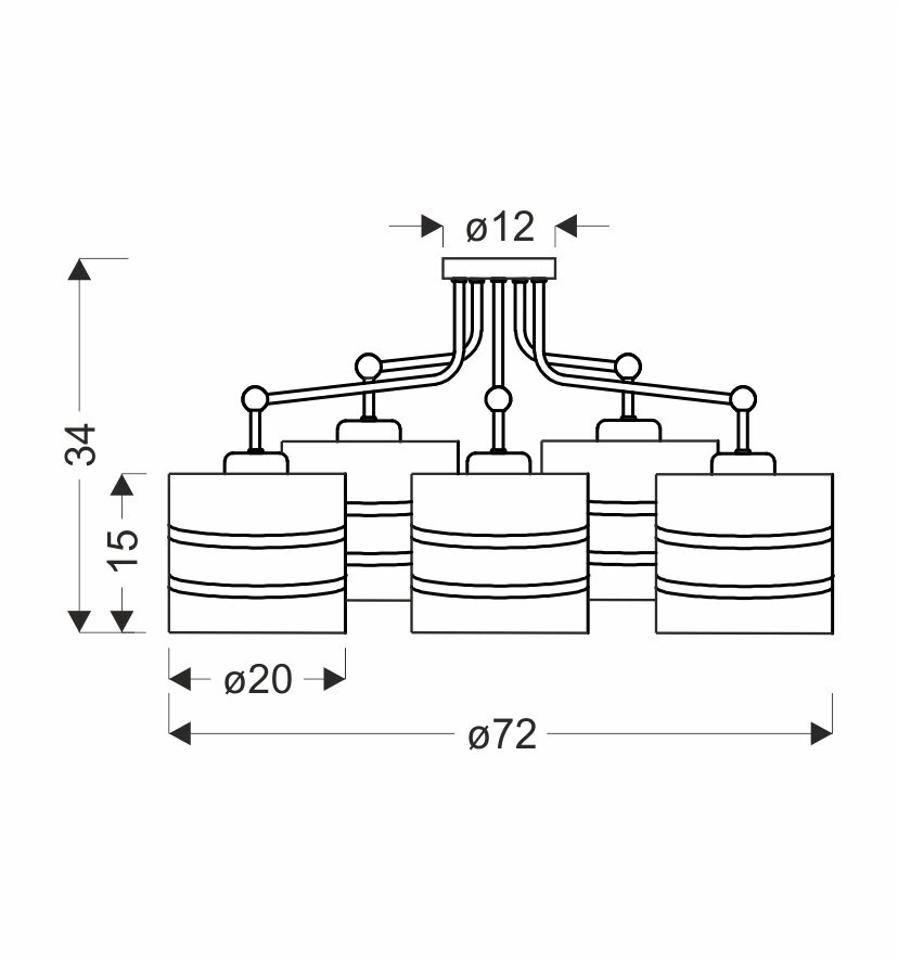 - Wyposażona w pięć oprawek E27, które zapewniają ciepłe, przyjemne światło.