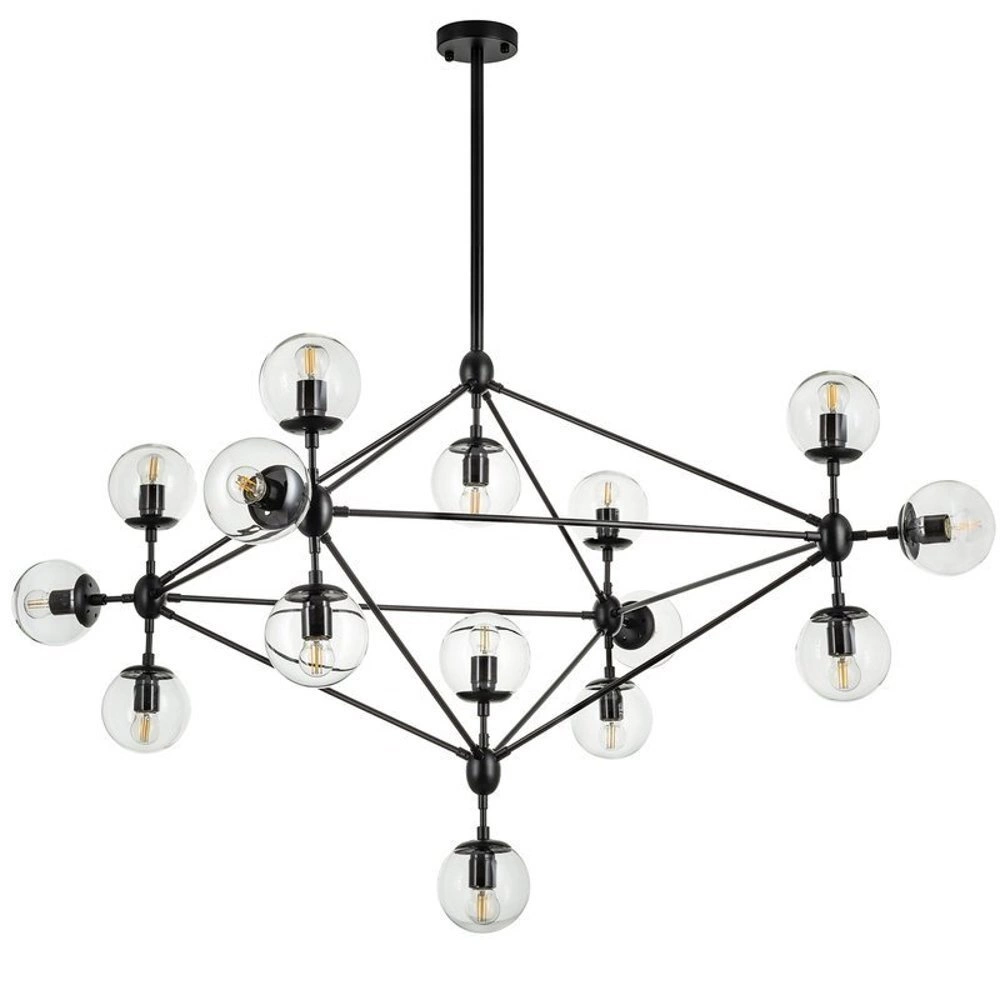 ASTRIFERO-15 to propozycja dla osób, które chcą nadać swojemu mieszkaniu wyrazisty, industrialny charakter. Połączenie czarnego metalu z lekkimi, szklanymi kulami o przezroczystym wykończeniu tworzy spektakularny efekt wizualny i przyciąga wzrok od pierwszego spojrzenia. Geometryczna kompozycja lampy, rozpięta na szerokość 110 cm, doskonale prezentuje się zarówno w przestronnym salonie, jak i nad stołem w jadalni czy nad wyspą w kuchni. Dzięki temu ten model sprawdzi się wszędzie tam, gdzie liczy się niepowtarzalny styl oraz funkcjonalność.