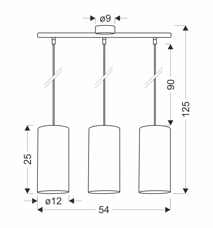 - Wyposażona w trzy oprawki E27 (max 60W) i abażury w kolorze orzechowym.