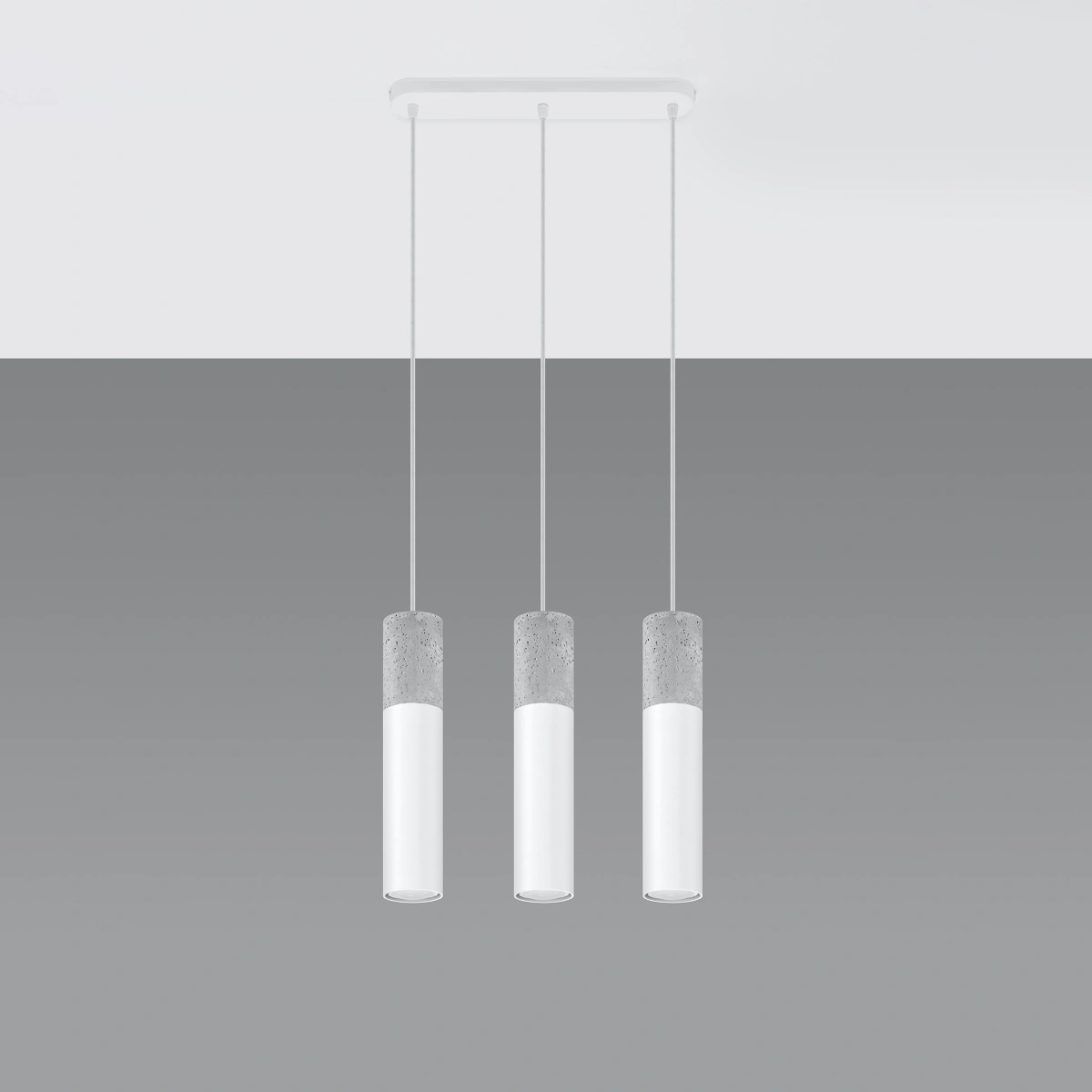 Lampa wisząca BORGIO 3L marki SOLLUX LIGHTING to nowoczesna propozycja nad stół do jadalni i kuchni, wyróżniająca się potrójnym źródłem światła oraz minimalistycznym, loftowym designem. Połączenie białego koloru z surowym cementem i metalem nadaje jej lekkości, a smukła forma (szerokość 6 cm, długość 45 cm, wysokość 90 cm) doskonale sprawdzi się zarówno w domowych aranżacjach, jak i w przestrzeniach komercyjnych. Trzy niezależne punkty świetlne na oprawach GU10 pozwalają na precyzyjne oświetlenie wybranych stref, tworząc wyjątkowy klimat nad wyspą kuchenną, stołem lub w salonie.