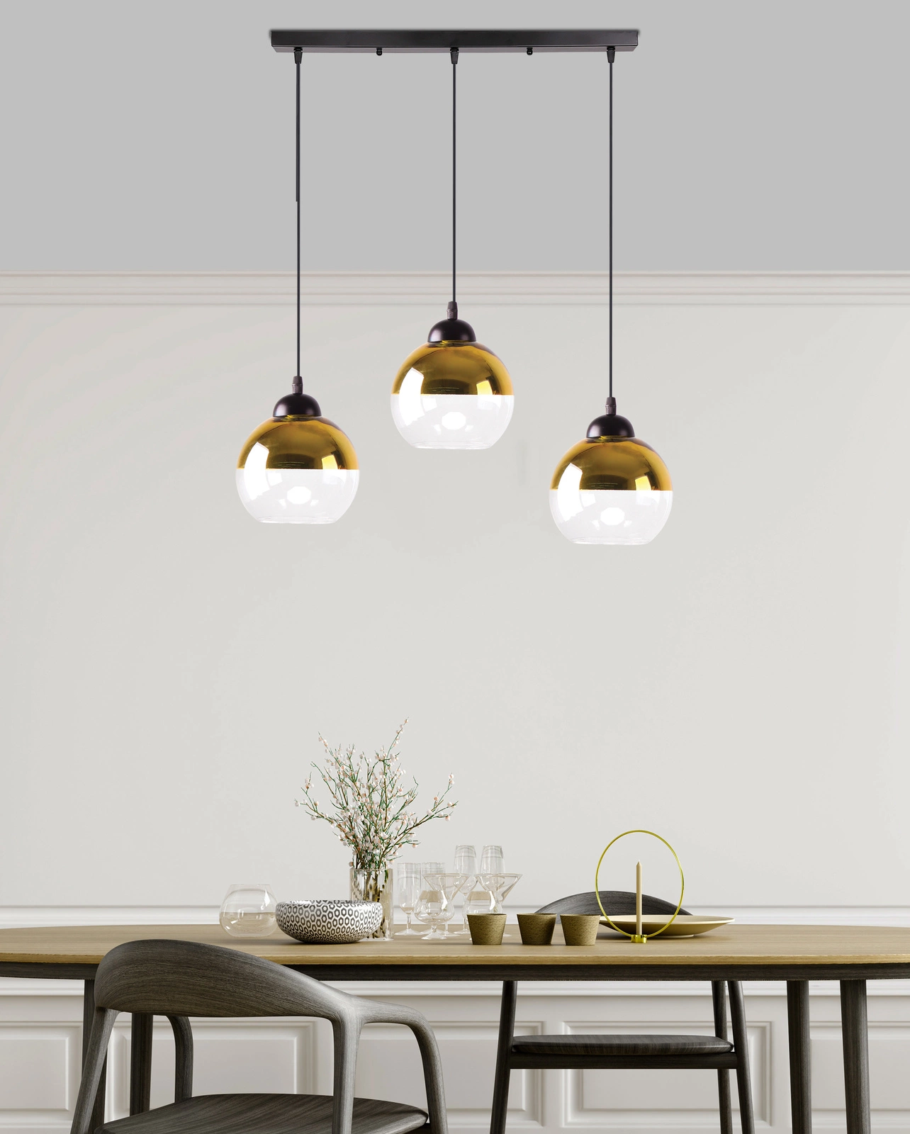 - Złoty klosz lustrzany na górze i transparentne szkło na dole tworzą niepowtarzalny efekt, który dodaje wnętrzom blasku.