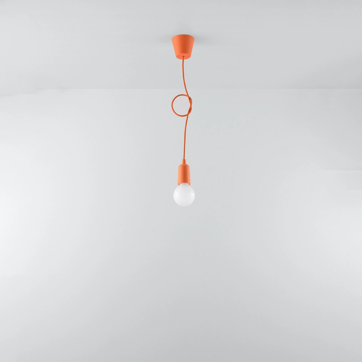 Lampa wisząca DIEGO marki Sollux Lighting to nowoczesna, pojedyncza oprawa o wysokości do 90 cm, wykonana z trwałego tworzywa sztucznego w energetyzującym pomarańczowym kolorze. Minimalistyczna forma, regulowana długość zwisu oraz uniwersalny gwint E27 sprawiają, że lampa doskonale odnajdzie się zarówno w salonie, kuchni, sypialni, jak i w jadalni czy przedpokoju. Subtelny, a zarazem wyrazisty design przyciąga wzrok i pozwala łatwo dopasować lampę do wnętrz w stylu nowoczesnym, loftowym lub industrialnym.
