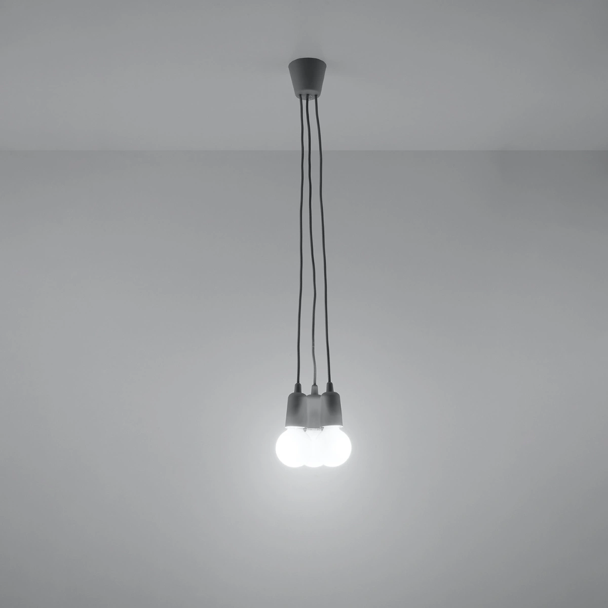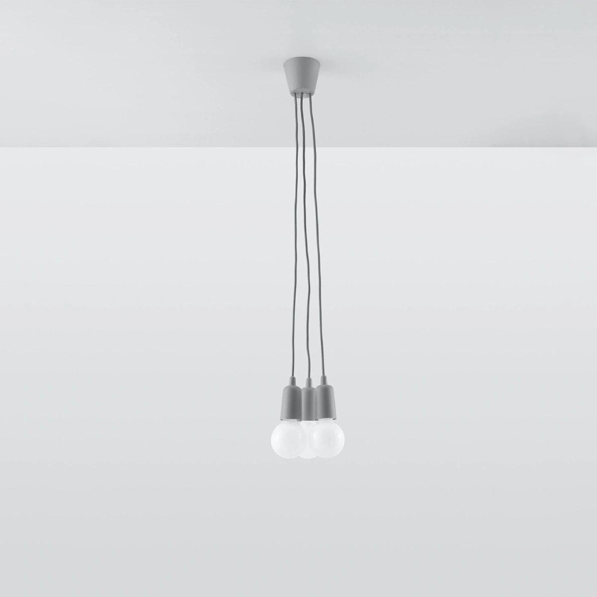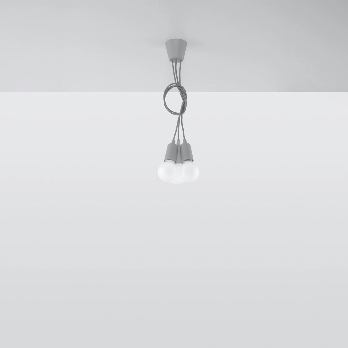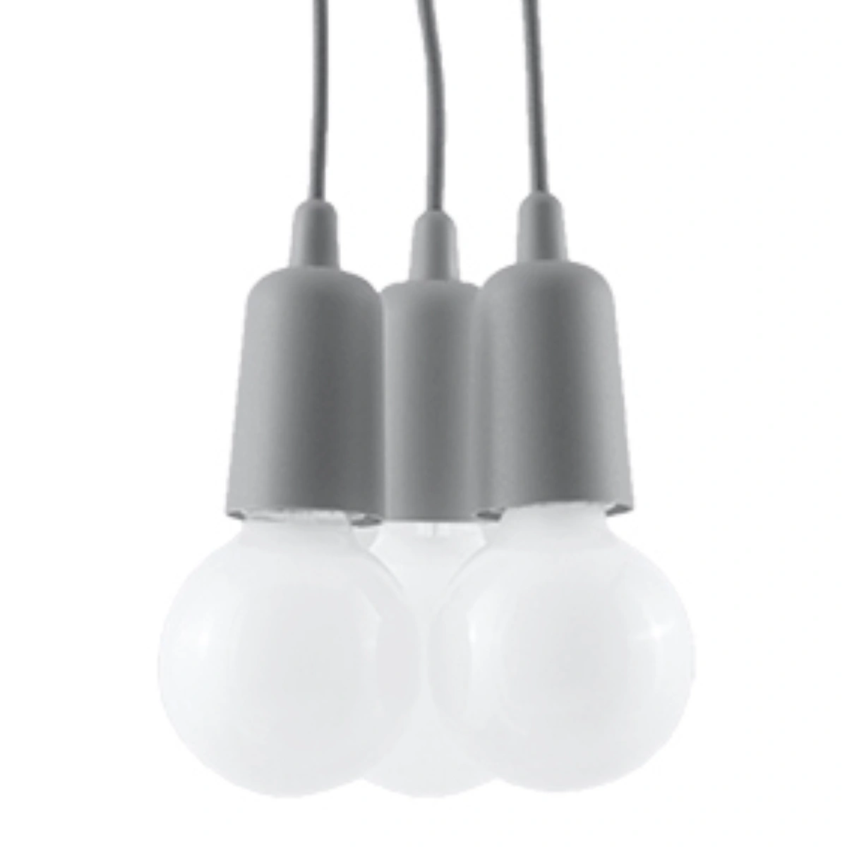 Lampa wisząca DIEGO szara 3-punktowa marki Sollux Lighting to nowoczesne oświetlenie sufitowe, które doskonale wpisuje się w trendy minimalistyczne i loftowe. Wykonana z trwałego tworzywa sztucznego, charakteryzuje się regulowaną wysokością do 90 cm oraz trzema źródłami światła, co pozwala na efektywne oświetlenie nawet większych przestrzeni. Uniwersalny szary kolor sprawia, że ten model doskonale odnajdzie się zarówno w salonie, kuchni, jak i nad stołem w jadalni.