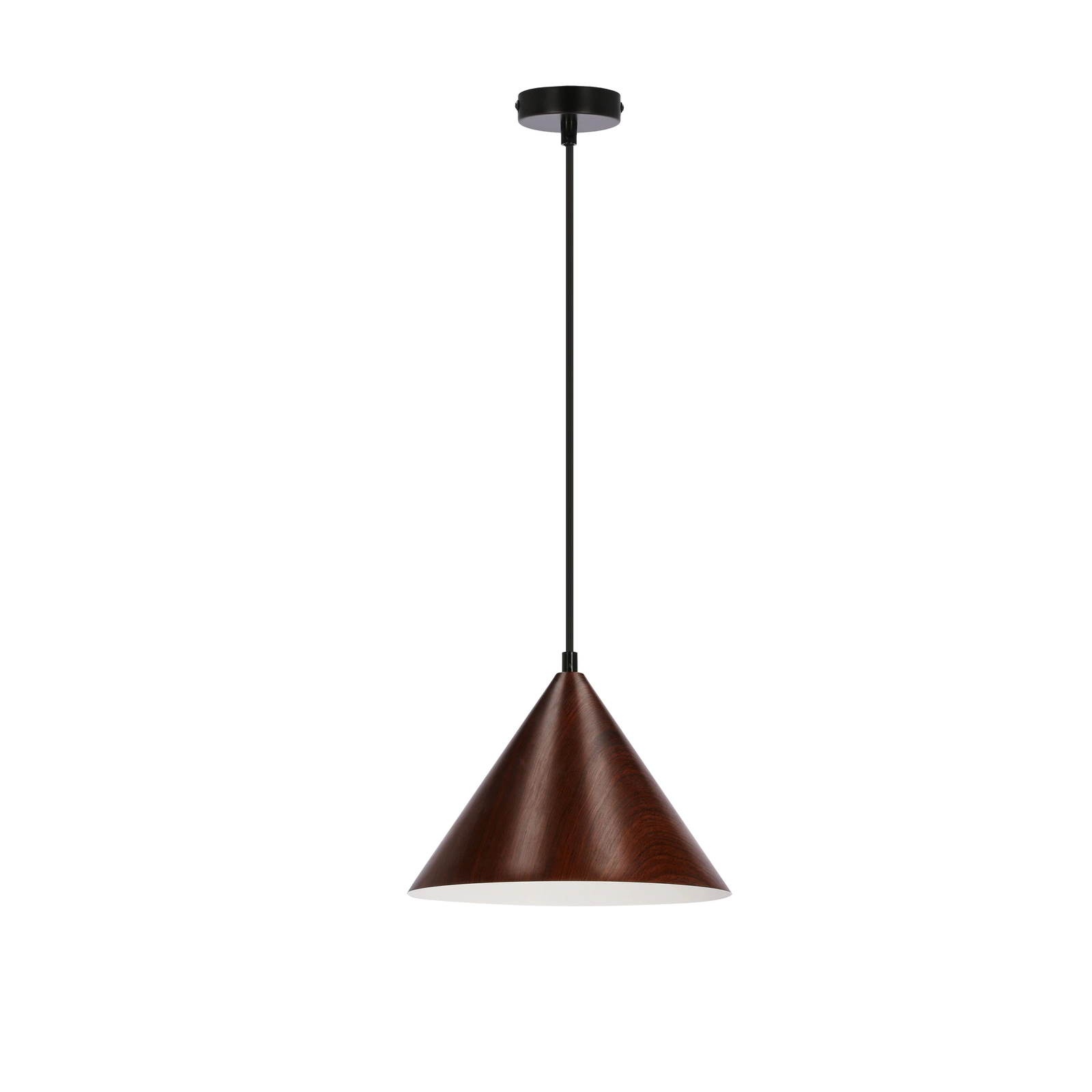 - Produkt jest wyposażony w klosz o średnicy 25 cm, wykonany z ciemnego orzecha.