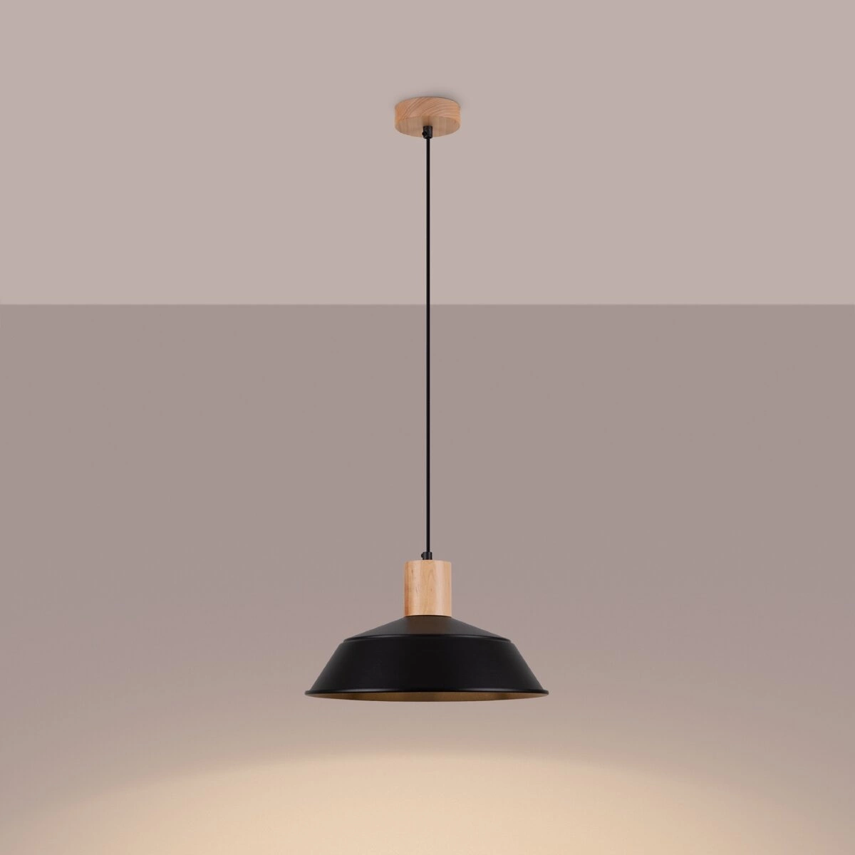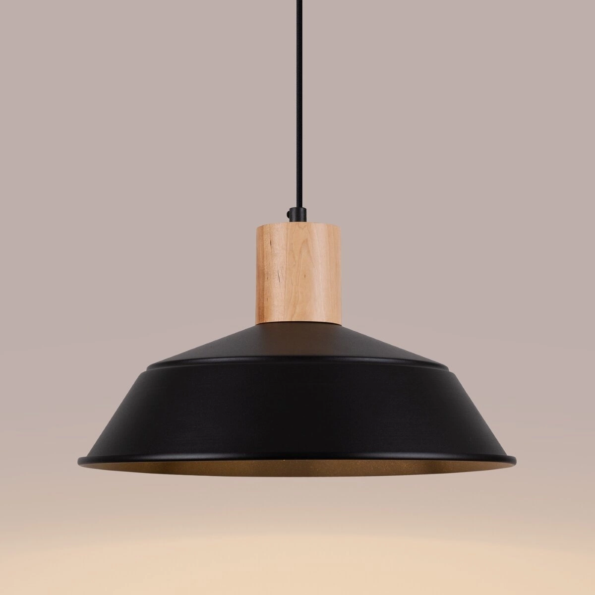 Zapraszamy do zapoznania się z naszą wyjątkową lampą wiszącą FANO w kolorze czarnym. Ta lampa to prawdziwa esencja minimalizmu, który łączy się tu z klasyczną elegancją. Lampa została zaprojektowana w taki sposób, że jej czyste linie i subtelne połączenie naturalnego drewna z matową, czarną powierzchnią tworzą niepowtarzalny design. Prosty, stożkowy klosz z harmonijnie rozpraszającym światłem dodaje wnętrzom subtelnej atmosfery, podkreślając ich nowoczesny charakter bez nadmiaru ozdobników.