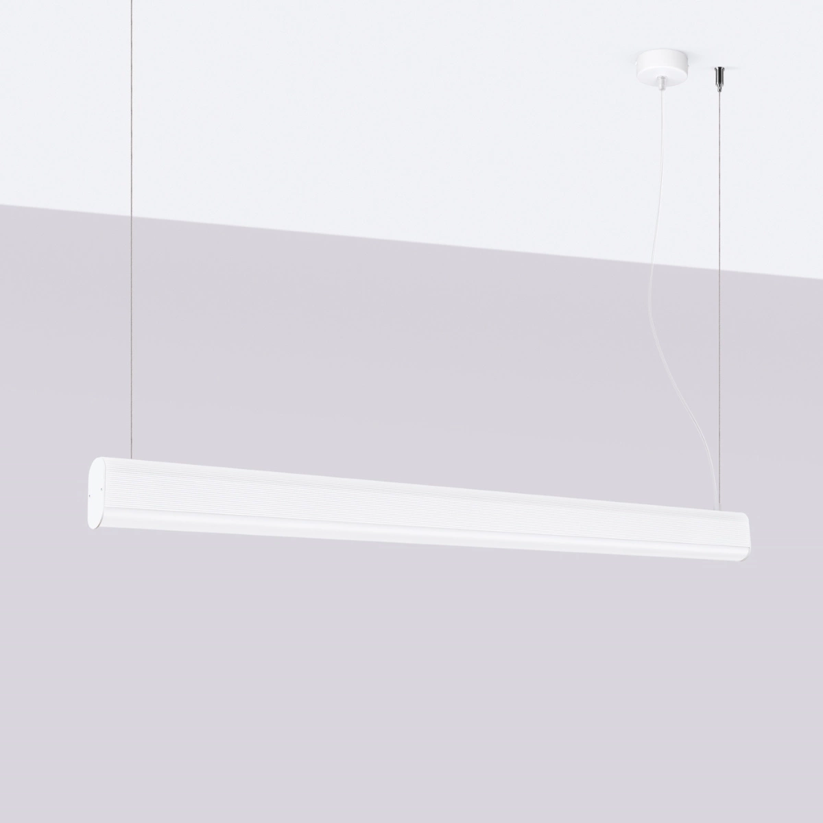 Prezentowana lampa sufitowa LED marki SOLLUX LIGHTING MUZOLF SPÓŁKA KOMANDYTOWA jest kwintesencją nowoczesnego designu. Jej smukła, wydłużona forma sprawia, że świetnie wpasuje się w minimalistyczne i nowoczesne wnętrza. Dwie delikatne linki, na których jest zawieszona, gwarantują jej stabilność, jednocześnie dodając całości lekkości. Dostępna w kilku wariantach kolorystycznych, lampa ta jest nie tylko funkcjonalnym, ale i estetycznym elementem wyposażenia każdego pomieszczenia.