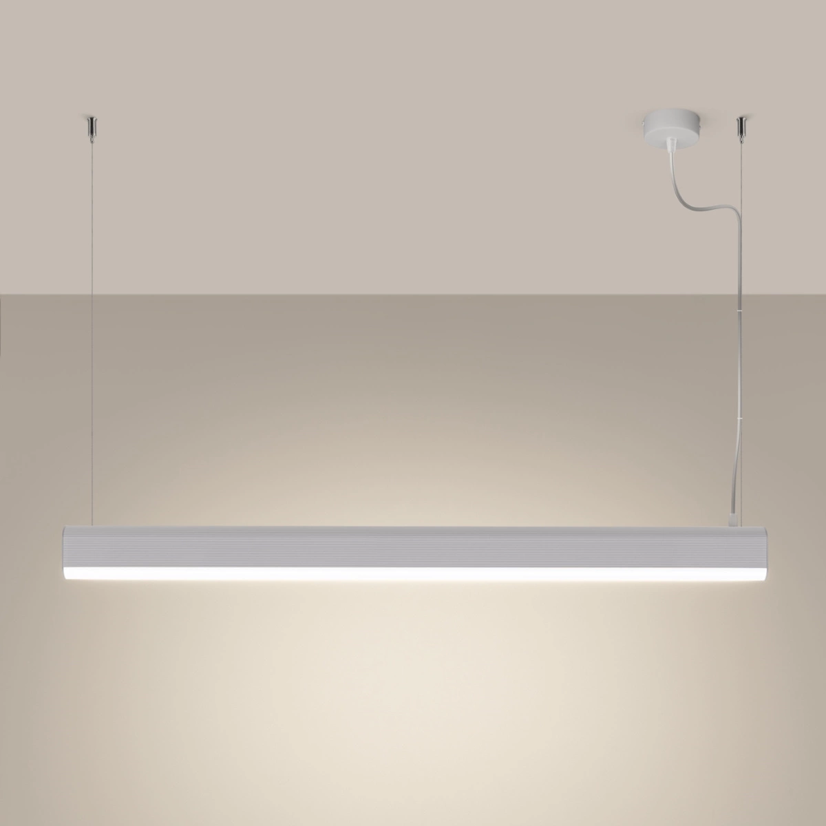 Lampa wisząca FARGE biała LED 4000K to nowoczesne oświetlenie sufitowe, które wyróżnia się swoim minimalistycznym i nowoczesnym stylem. Wykonana z aluminium, lampa jest zawieszona na dwóch subtelnych linkach, które nie tylko zapewniają stabilność, ale także dodają lekkości konstrukcji. Dzięki swoim prostym, linearnie wydłużonym kształtom, ta lampa idealnie wpasuje się w każde wnętrze, dodając mu elegancji i stylu.