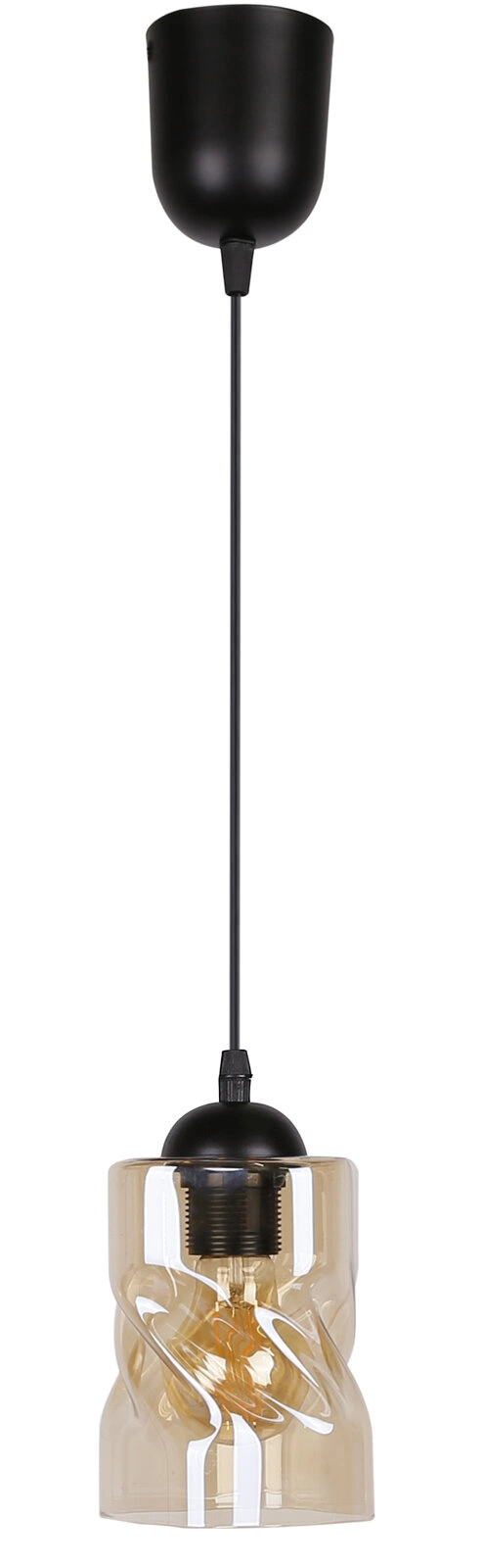 Lampa wisząca Felis to znakomite połączenie elegancji z funkcjonalnością. Jej czarna, matowa podstawa wykonana z metalu harmonijnie łączy się z czarnym przewodem, na końcu którego znajduje się źródło światła. Szklany, bursztynowy klosz, który osłania źródło światła, dodaje lampie niepowtarzalnego charakteru i ciepła. Klosz przepuszcza światło, tworząc przytulną atmosferę w pomieszczeniu.