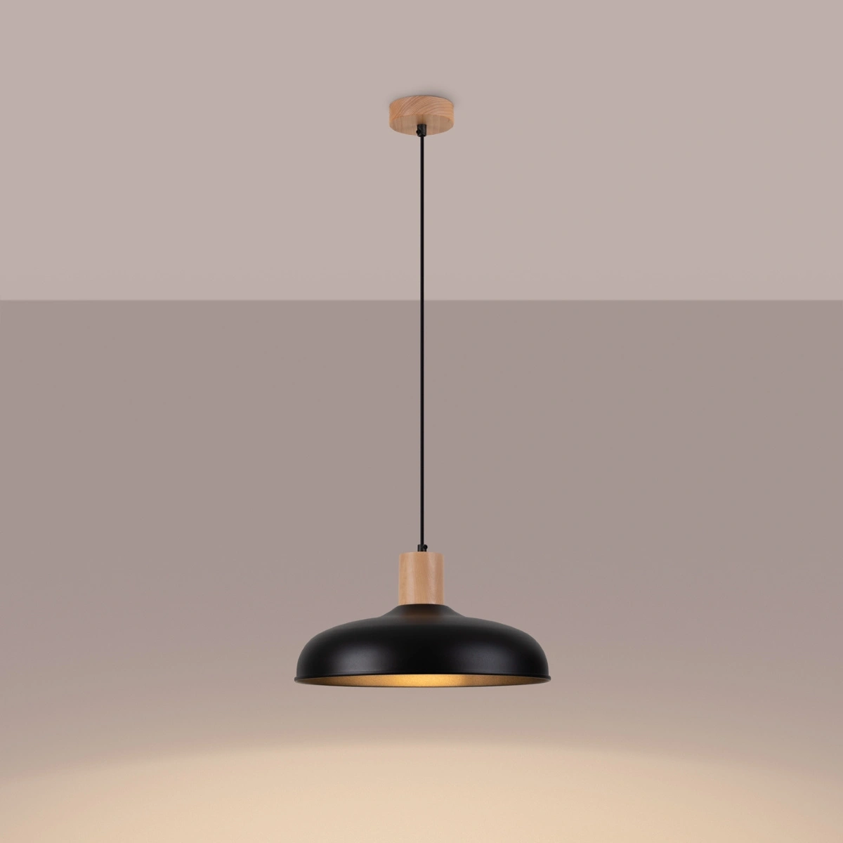- Okrągły klosz 38 cm – równomierne i przyjemne rozproszenie światła w pomieszczeniu