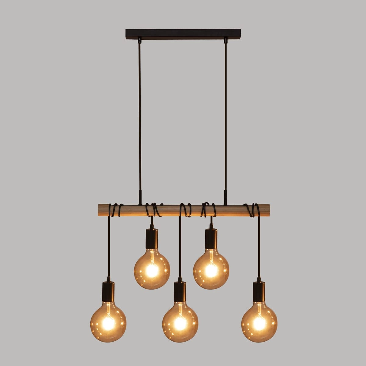 Jeżeli cenisz sobie niebanalne rozwiązania, które nadają wnętrzom wyjątkowego charakteru, lampa wisząca Jake od marki Atmosphera będzie dla Ciebie idealnym wyborem. Jej niepowtarzalny design skupia się na istocie - pięć żarówek zawieszonych na kablach, które owijają się wokół poziomego drążka z drewna sosnowego. To sprawia, że lampa Jake z powodzeniem wpisuje się w stylistykę vintage, rustykalną, retro, klasyczną, a także industrialną.