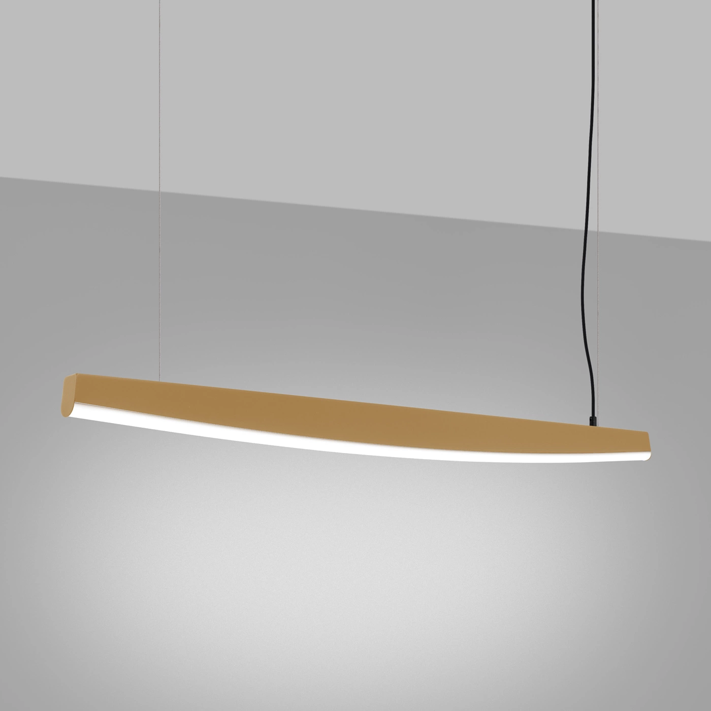 Złota lampa wisząca JORUN 120 to wyjątkowy dodatek do każdego nowoczesnego wnętrza. Wykonana z wysokiej jakości stali, zapewnia trwałość i odporność na uszkodzenia. Zintegrowane źródło światła LED o mocy 22W i barwie 4000K daje jasne i przyjemne dla oka światło, idealne do czytania, pracy czy relaksu. Dzięki swoim wymiarom (120/3/210 cm) lampa doskonale sprawdzi się w salonie, sypialni, jadalni czy kuchni.