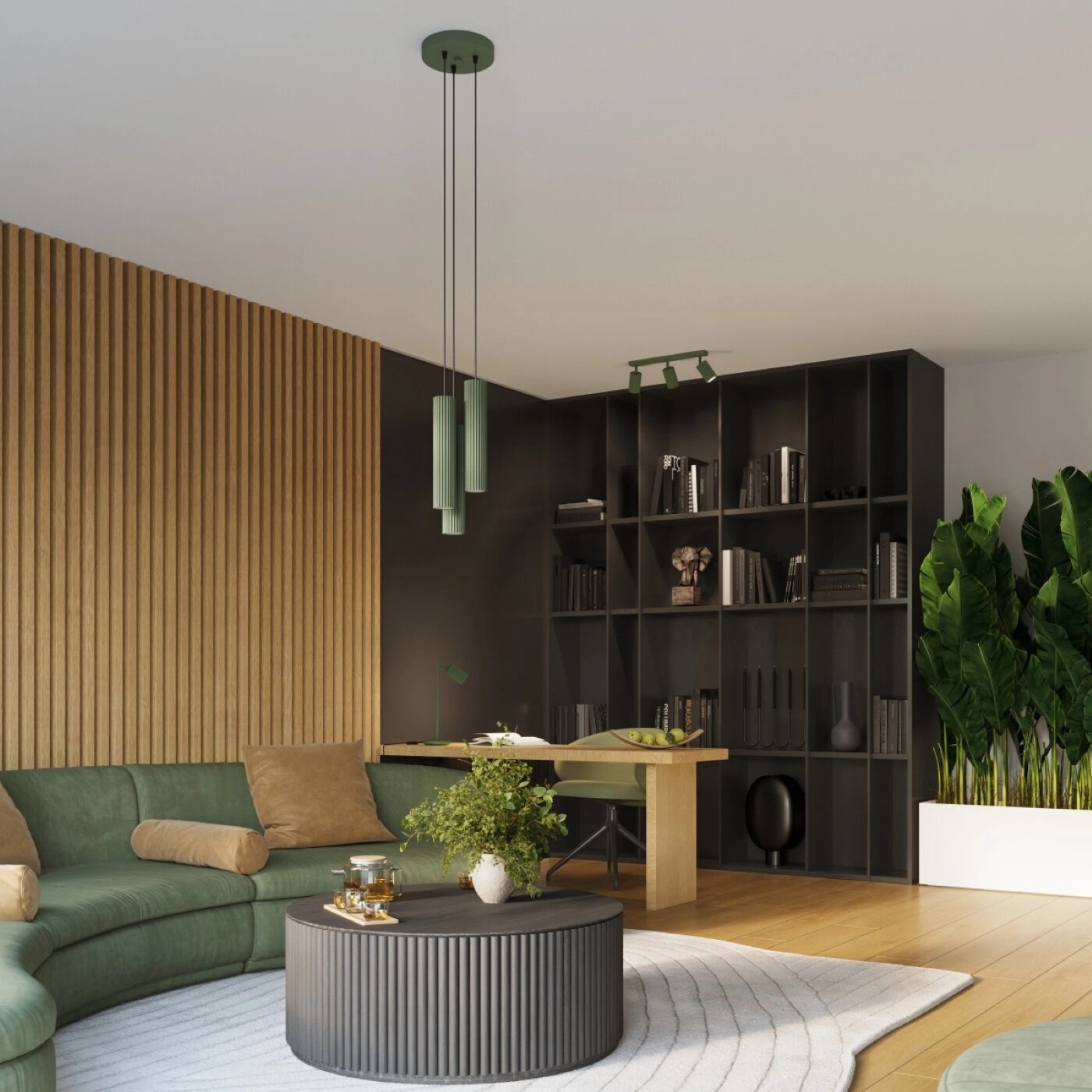Prezentowana lampa wisząca KARBON 3P w odcieniu zielonej oliwki to połączenie nowoczesnego designu z funkcjonalnością. Jej wyjątkowy, ryflowany wzór dodaje wnętrzom niepowtarzalnego charakteru. To propozycja dla osób ceniących minimalistyczne rozwiązania z nutą glamour. Dzięki regulowanej wysokości zawieszenia, lampa doskonale sprawdzi się w różnych przestrzeniach - od salonu, przez sypialnię, aż po gabinet czy przedpokój.