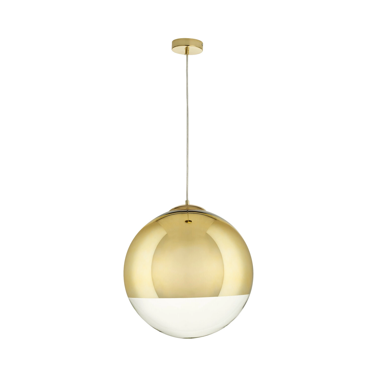 Lampa wisząca kula FLASH L marki Step into Design to nowoczesne oświetlenie sufitowe o imponującej średnicy 40 cm, które łączy szklany klosz w odcieniu złota ze stylowym, transparentnym wykończeniem. Model wyposażony jest w regulowane zawieszenie (do 240 cm), co pozwala idealnie dopasować wysokość lampy do charakteru wnętrza. Ta designerska lampa wisząca doskonale odnajdzie się w salonie, nad stołem w jadalni, a także jako efektowna lampa nad wyspę w kuchni.