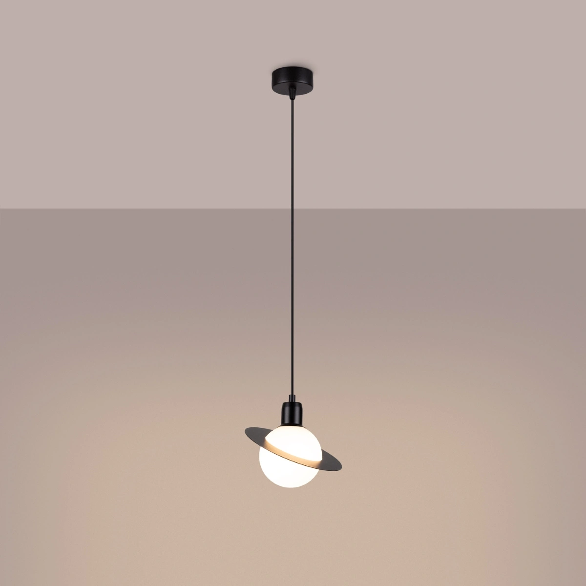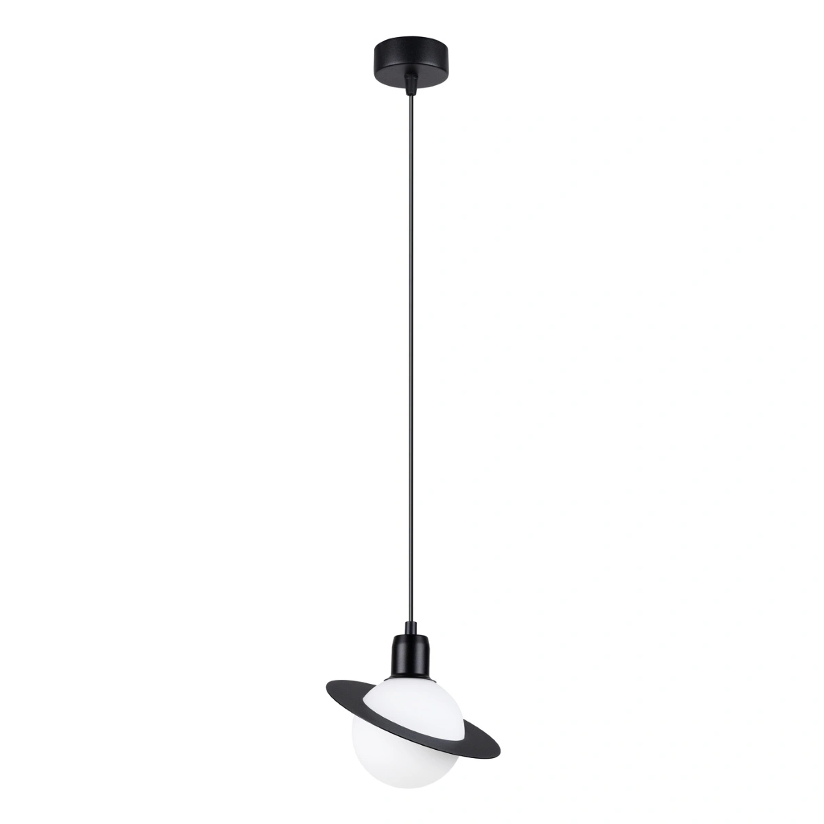 Lampa wisząca kula HYPERION 1 marki SOLLUX LIGHTING to nowoczesne oświetlenie sufitowe, które łączy minimalistyczny design z funkcjonalnością na najwyższym poziomie. Klosz w kształcie idealnej białej kuli, osadzony na eleganckiej czarnej oprawie, wykonany jest z trwałego szkła i stali. Dzięki regulowanej wysokości zawieszenia (do 125 cm), lampa doskonale sprawdzi się zarówno jako subtelna lampa nad stół w jadalni, jak i efektowny żyrandol do salonu czy sypialni.