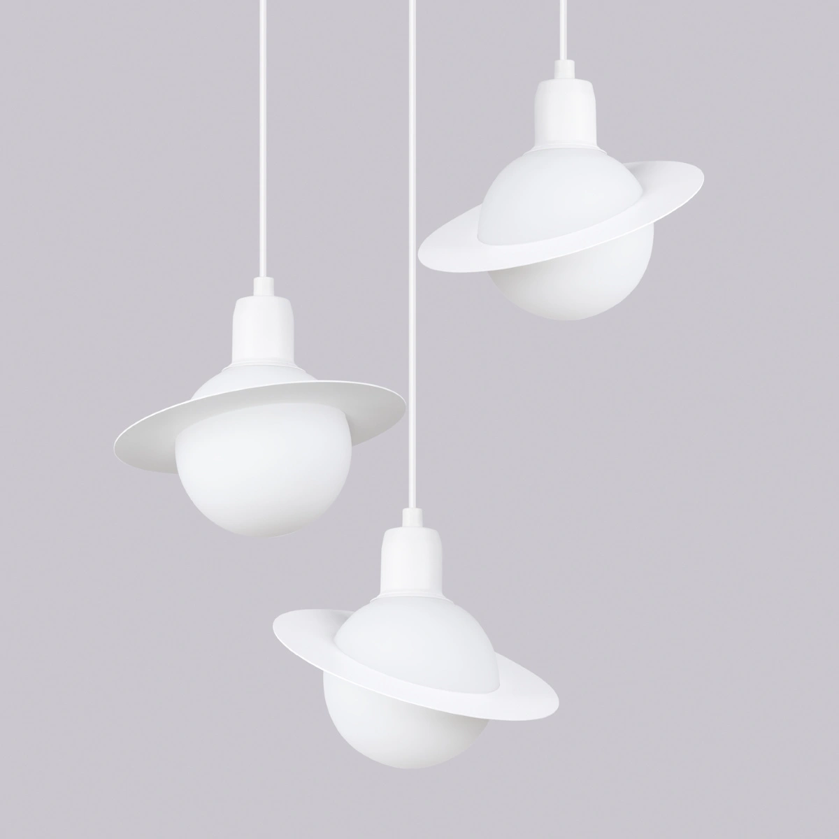 Lampa wisząca HYPERION 3P w formie trzech białych kul zawieszonych na delikatnych przewodach doskonale wpisuje się w nowoczesne aranżacje. Okrągły kształt kloszy nadaje przestrzeni lekkości i harmonii, a matowa biel subtelnie odbija światło, zapewniając przyjemną, rozproszoną iluminację. To rozwiązanie, które sprawdzi się zarówno nad stołem w jadalni, jak i jako żyrandol do salonu, tworząc spójną i elegancką kompozycję świetlną.