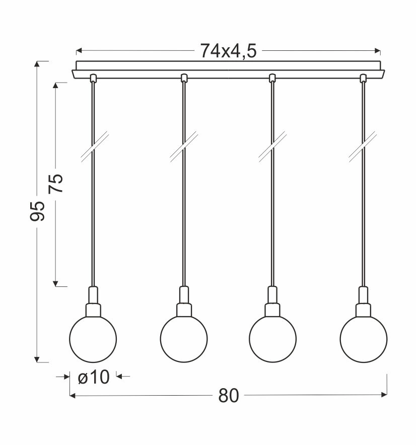 Cztery źródła światła o mocy do 40W każde zapewniają równomierne oświetlenie nawet większych przestrzeni. Dzięki szerokości 80 cm, lampa świetnie sprawdza się jako lampa nad stół w jadalni lub lampa nad wyspę w kuchni, tworząc przyjemną atmosferę podczas rodzinnych spotkań czy wieczornych kolacji. Praktyczna wysokość 95 cm umożliwia wygodne dopasowanie do większości pomieszczeń, gwarantując optymalną ilość światła tam, gdzie go najbardziej potrzebujesz.