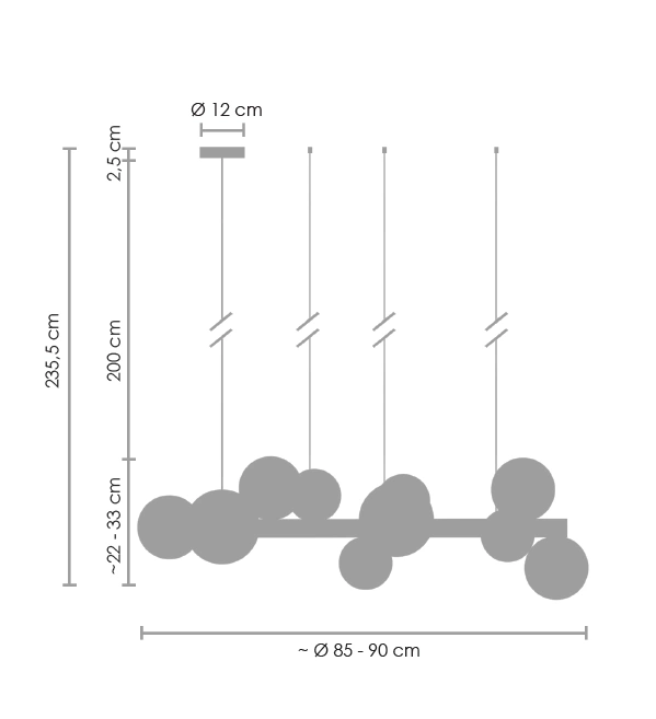 Orion sprawdzi się nie tylko jako designerski żyrandol do salonu, ale również jako lampa nad stół jadalniany czy funkcjonalne oświetlenie nad wyspę kuchenną. Dzięki regulowanej wysokości zawieszenia (od 26 do aż 226 cm), łatwo dopasujesz ją do potrzeb danego pomieszczenia – zarówno w wysokim lofcie, jak i w niższym mieszkaniu. Szerokość 85 cm pozwala efektownie oświetlić nawet duże stoły czy przestronne salony.