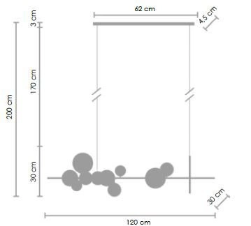 Orion Long wyposażona jest w 11 punktów świetlnych LED na oprawkach G4 o mocy 5 W każda, co gwarantuje jasne, a jednocześnie energooszczędne oświetlenie. Transparentne szklane kule subtelnie rozpraszają światło, tworząc przyjemną atmosferę bez efektu olśnienia – idealną do codziennego relaksu, rodzinnych spotkań czy pracy przy kuchennym blacie.