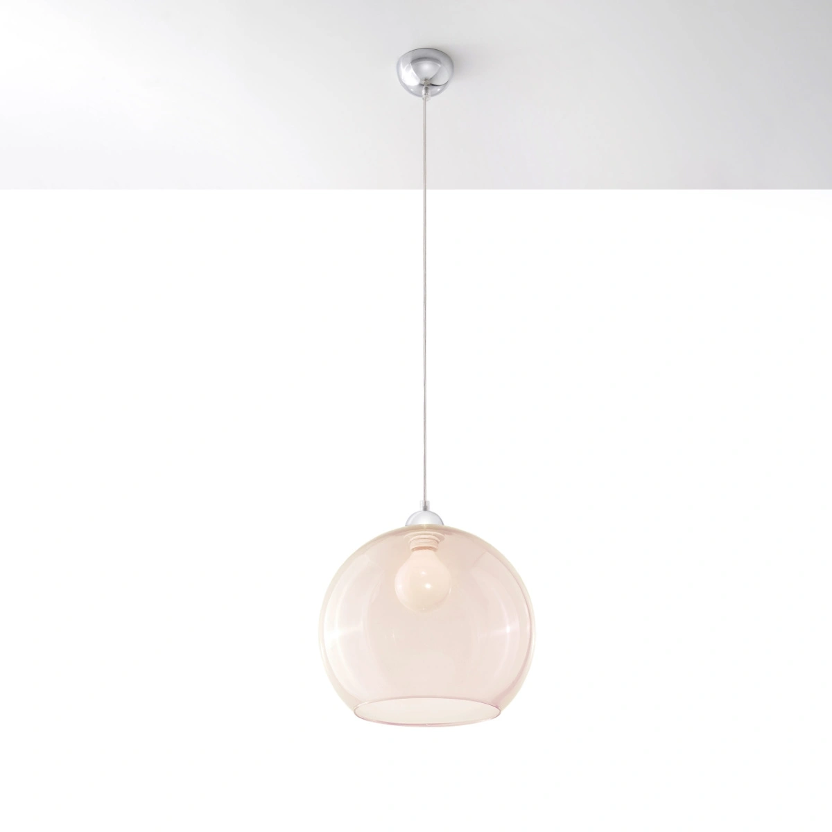 Szklana lampa wisząca kula BALL to wybór dla osób, które cenią elegancki minimalizm w nowoczesnym wydaniu. Zastosowanie wysokiej jakości szkła sprawia, że żyrandol prezentuje się niezwykle lekko i harmonijnie, zarówno w jasnych, jak i ciemniejszych wnętrzach. Metalowe wykończenia podkreślają industrialny charakter, a uniwersalny beżowy kolor doskonale współgra z różnorodnymi stylami wyposażenia – od loftowego po skandynawski.