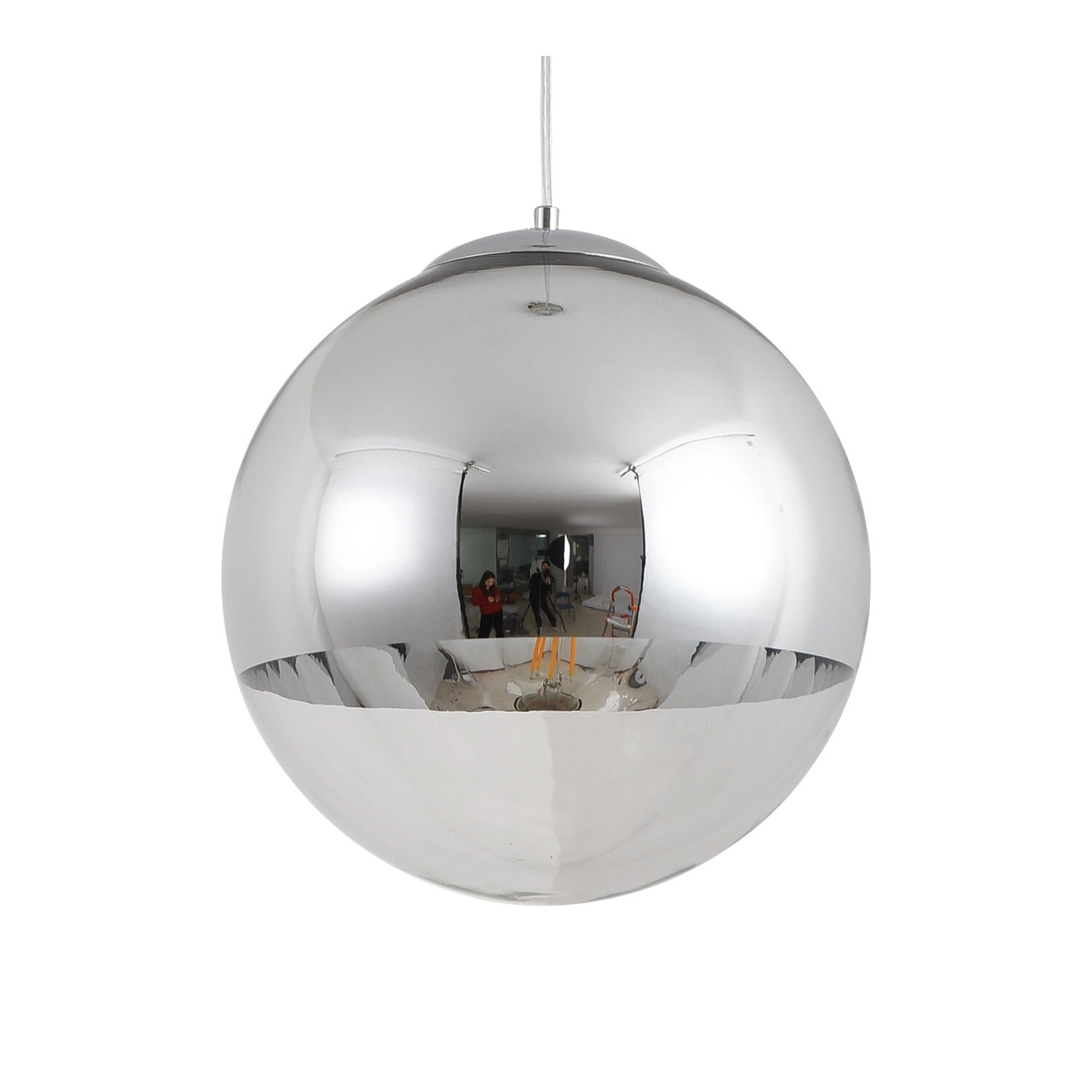 FLASH L to lampa wisząca kula, która zachwyca minimalistyczną formą i efektownym wykończeniem. Chromowana powierzchnia sprawia, że światło subtelnie rozprasza się po pomieszczeniu, jednocześnie odbijając elementy wystroju. Taki żyrandol do salonu czy lampa nad wyspę kuchenną stanowi mocny akcent dekoracyjny, nadając wnętrzu nowoczesny, industrialny charakter.
