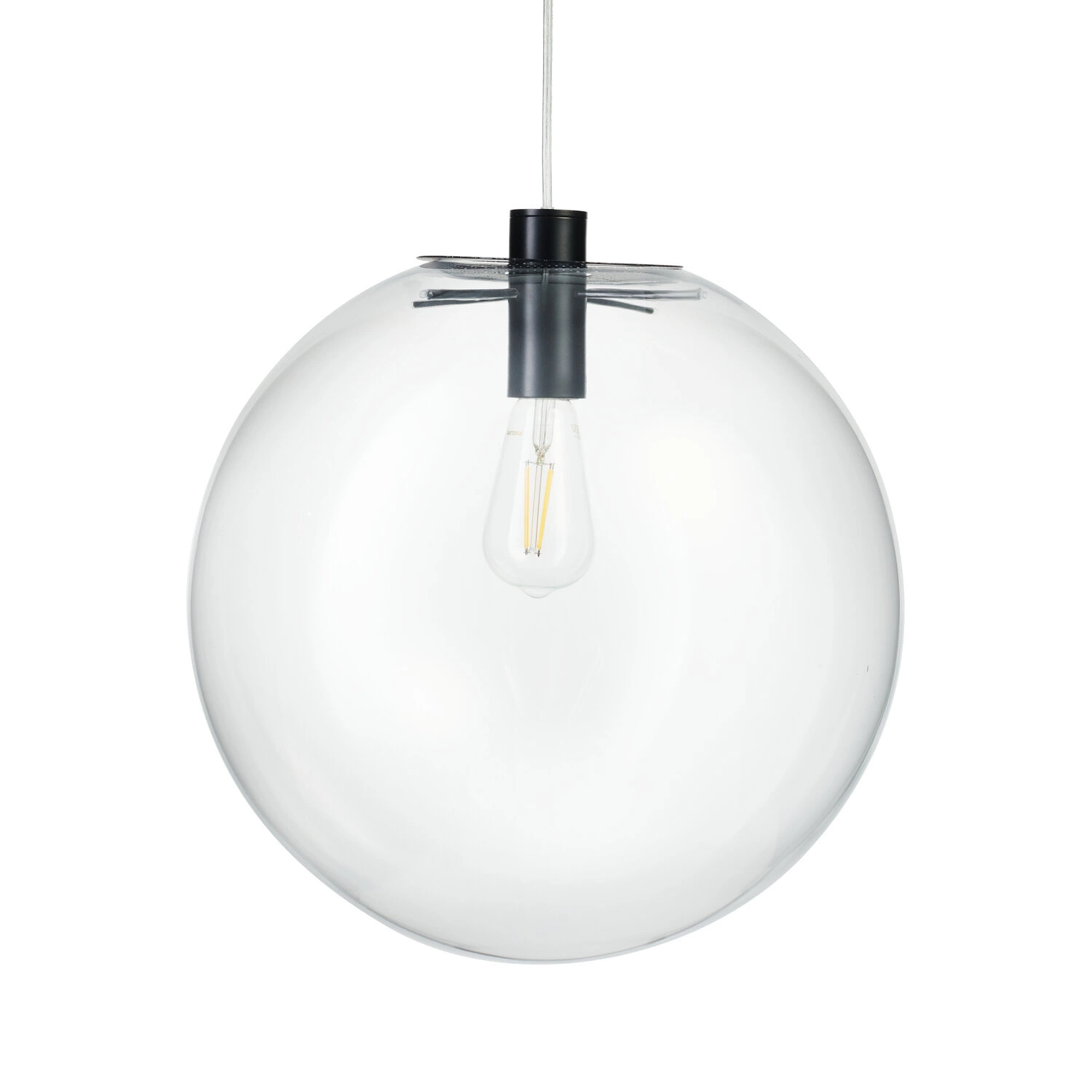 Lampa wisząca kula szklana czarna TONDA 40 cm marki Step into Design to połączenie nowoczesnego minimalizmu z funkcjonalnością. Wykonana z transparentnego szkła i czarnego metalu, o imponującej średnicy 40 cm, oferuje regulowaną wysokość zawieszenia, co pozwala łatwo dopasować ją do każdego wnętrza. Ten model wyróżnia się wyrazistą, kulistą formą, która doskonale sprawdzi się zarówno jako lampa do salonu, jak i żyrandol nad stół w jadalni czy lampa nad wyspę w kuchni.