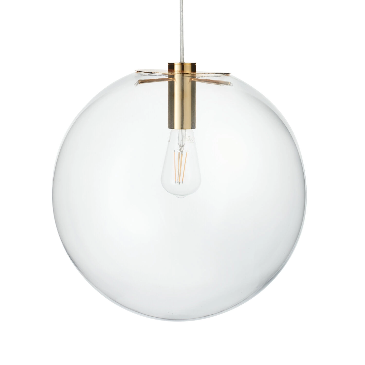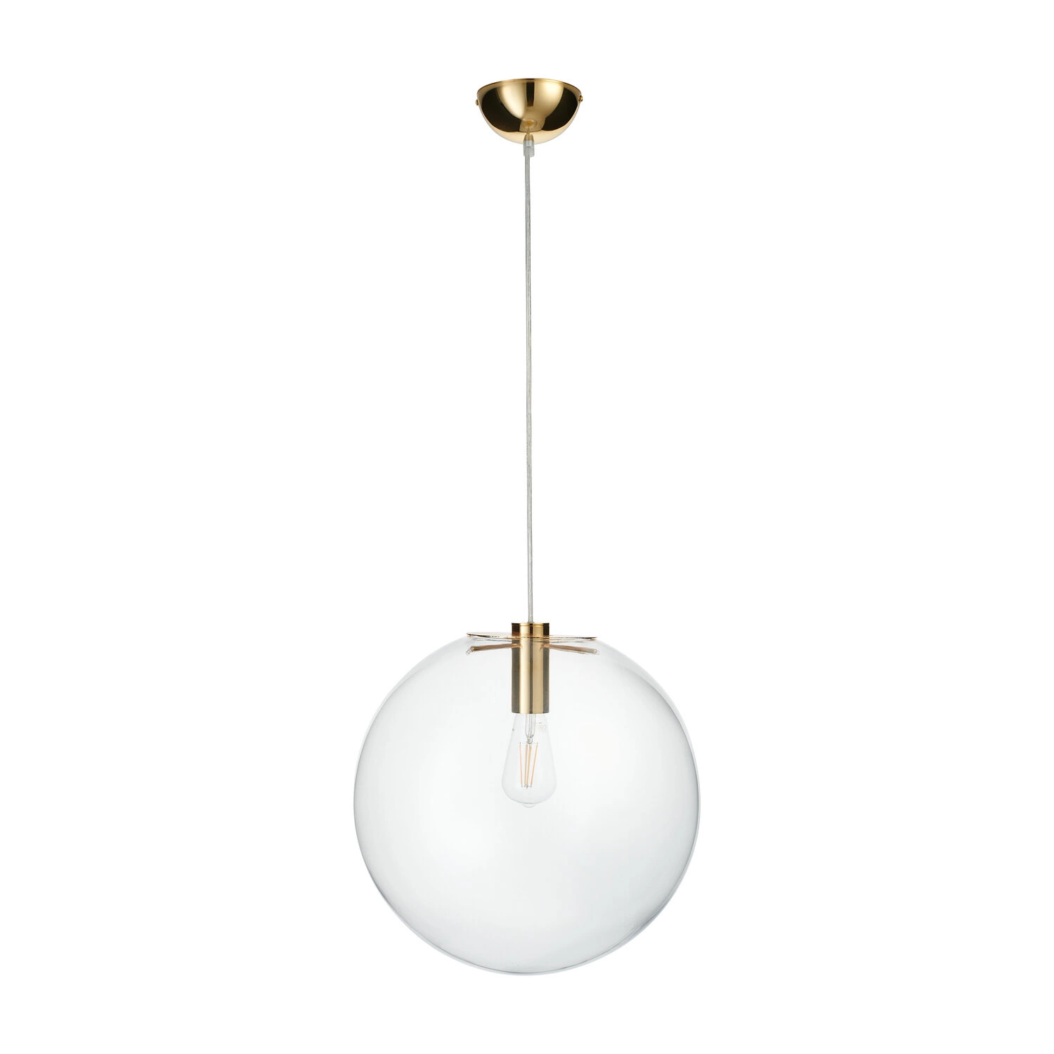 TONDA to lampa wisząca kula, która świetnie sprawdzi się jako dekoracyjne oświetlenie sufitowe do jadalni, salonu, kuchni lub nad wyspę. Transparentny klosz z wysokiej jakości szkła nadaje wnętrzu lekkości, a złota podsufitka i elementy wykończenia podkreślają nowoczesny styl glamour. Dzięki średnicy 40 cm lampa zapewnia równomierne, rozproszone światło, idealne do wspólnych posiłków czy wieczornego relaksu w domowym zaciszu.