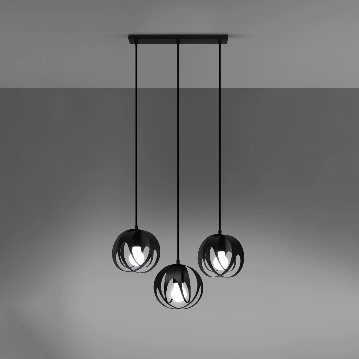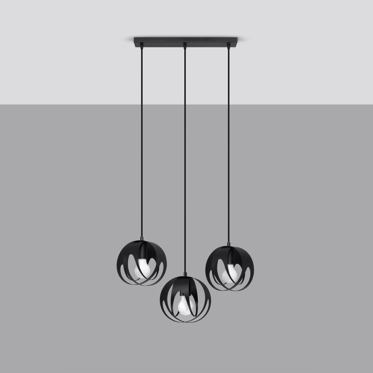 Lampa wisząca kula Tulos 3-punktowa marki SOLLUX LIGHTING to propozycja dla osób ceniących wyrazisty, nowoczesny design oraz praktyczne rozwiązania w oświetleniu. Wykonana z wytrzymałej stali w matowej czerni, z trzema efektownymi kloszami w kształcie kul, doskonale sprawdzi się jako lampa nad stół, do salonu, jadalni czy nad wyspę kuchenną. Jej geometryczna forma i industrialny charakter nadają wnętrzu niepowtarzalny klimat, a szerokość 50 cm i wysokość 117 cm zapewniają optymalne rozproszenie światła w nawet większych przestrzeniach.
