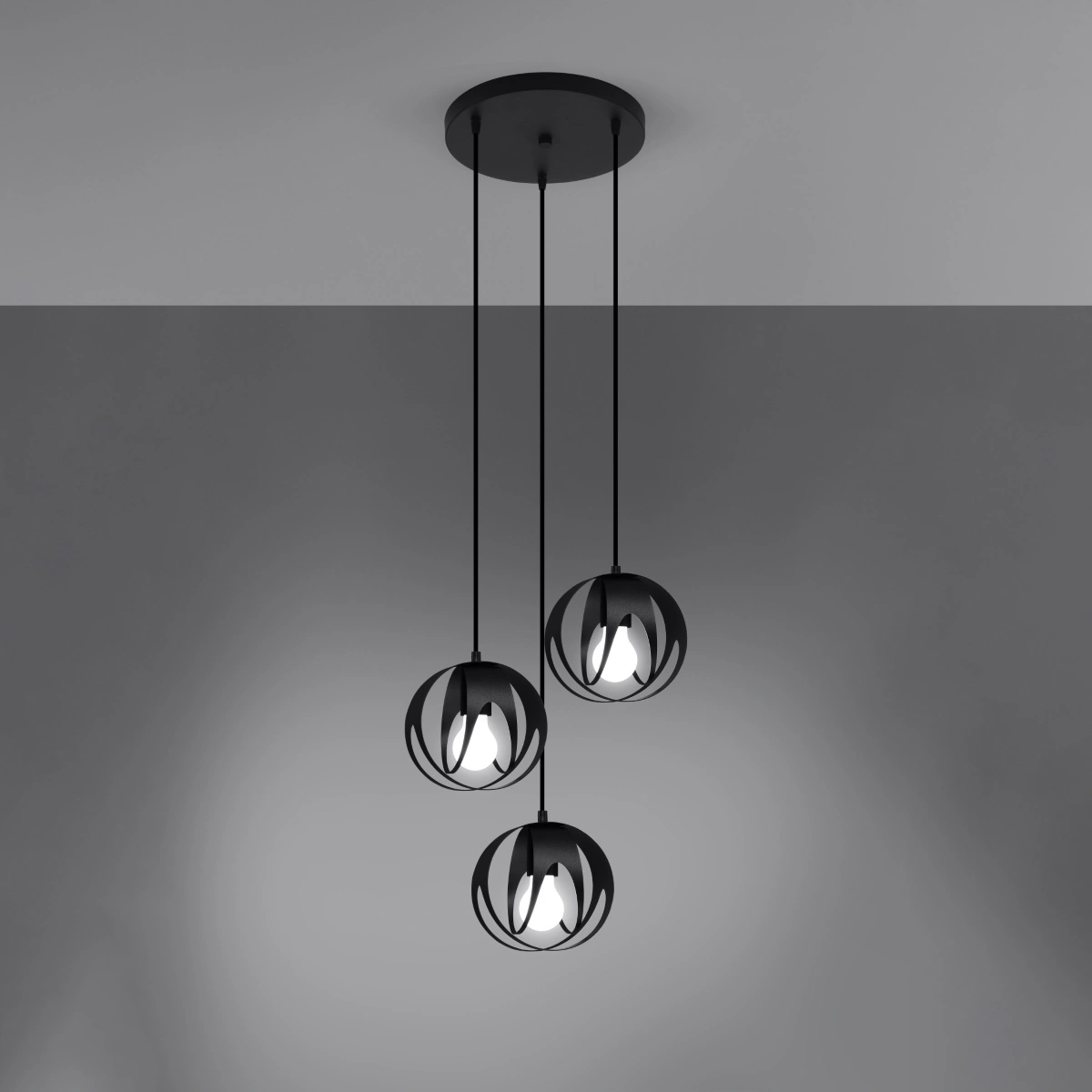 Lampa wisząca kula Tulos 3-punktowa marki Sollux Lighting to nowoczesna propozycja oświetlenia sufitowego, która zachwyca designerską formą i funkcjonalnością. Model w kolorze głębokiej czerni, wykonany z trwałej stali, wyróżnia się trzema kulistymi kloszami rozmieszczonymi na szerokości 33 cm, co zapewnia równomierne rozproszenie światła. Dzięki wysokości 117 cm, lampa doskonale sprawdzi się zarówno jako lampa nad wyspę kuchenną, jak i żyrandol do salonu lub jadalni.