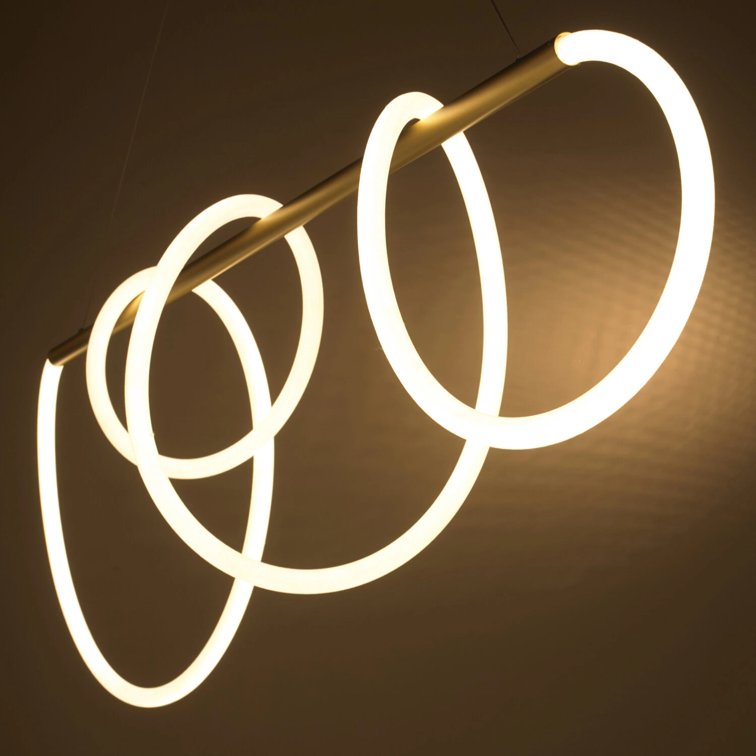 Lampa wisząca LED FANTASIA marki Step into Design to nowoczesna propozycja o długości 120 cm, która zachwyca eleganckim, złotym wykończeniem i minimalistyczną formą. Wykonana z połączenia metalu, akrylu i tkaniny, oferuje ciepłe, przyjemne światło LED (35W), idealne do oświetlenia salonu, jadalni lub nad stół. Jej designerski styl glamour wprowadza do wnętrz nutę luksusu i ponadczasowej klasy – a starannie dobrane materiały gwarantują nie tylko efektowny wygląd, ale i łatwość utrzymania w czystości.