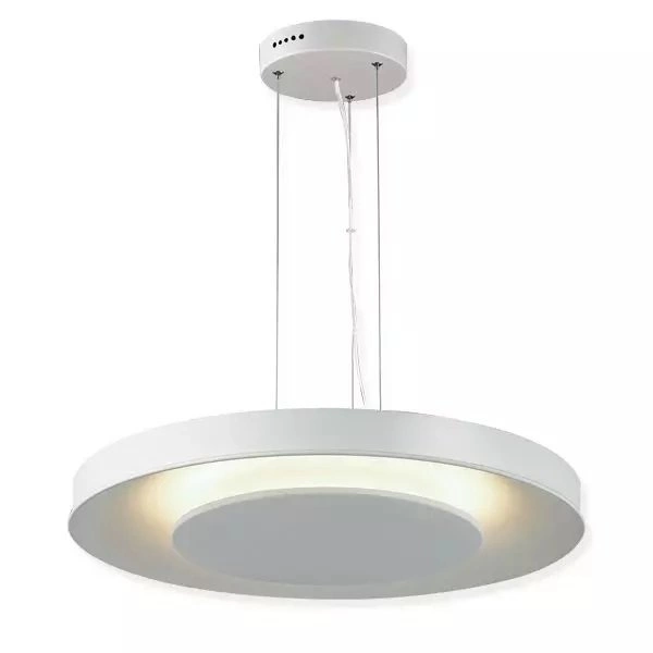 Lampa wisząca LED Futuro no.1 wyróżnia się geometryczną formą i subtelną bielą, dzięki czemu wpisuje się w aktualne trendy nowoczesnych wnętrz. Okrągły, minimalistyczny klosz wykonany z aluminium nadaje lekkości, a jednocześnie jest odporny na uszkodzenia. Ten model świetnie sprawdza się jako lampa nad stół do jadalni, żyrandol do salonu czy designerska lampa sufitowa do kuchni, wprowadzając do wnętrza poczucie harmonii i świeżości.