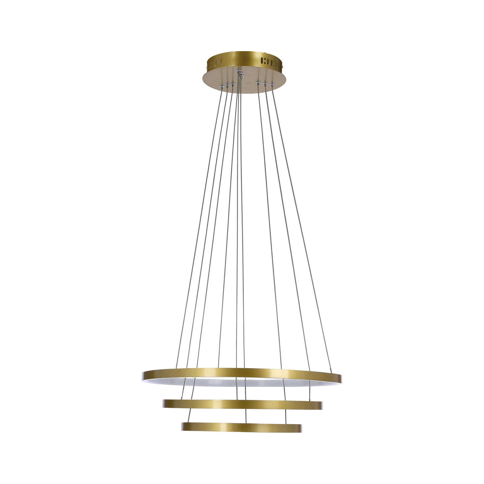 Lampa wisząca LED Lune marki Candellux Lighting to nowoczesny żyrandol o szerokości 50 cm, w eleganckim złotym kolorze, wykonany z aluminium i stali. Trzypunktowe źródło światła LED o delikatnie ciepłej barwie 4000K doskonale rozjaśni salon, jadalnię lub kuchnię, tworząc przytulną i stylową atmosferę. Ten designerski model to nie tylko funkcjonalne oświetlenie sufitowe, lecz także efektowna dekoracja, która stanie się centralnym punktem każdego wnętrza.