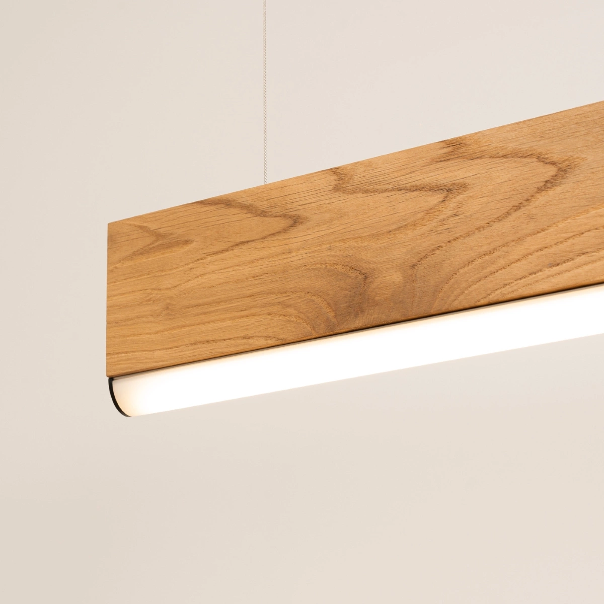 LYKKE 120 LED 3000K to wyjątkowa lampa wisząca, która łączy w sobie naturalny urok drewna dębowego z najnowszymi trendami w dziedzinie oświetlenia. Jej prostokątna, długa forma doskonale wpisuje się w różnorodne stylizacje wnętrz, od rustykalnych, przez klasyczne, aż po nowoczesne i loftowe. Dzięki swojej uniwersalności, lampa ta stanie się doskonałym uzupełnieniem salonu, sypialni, jadalni, przedpokoju czy pokoju młodzieżowego.