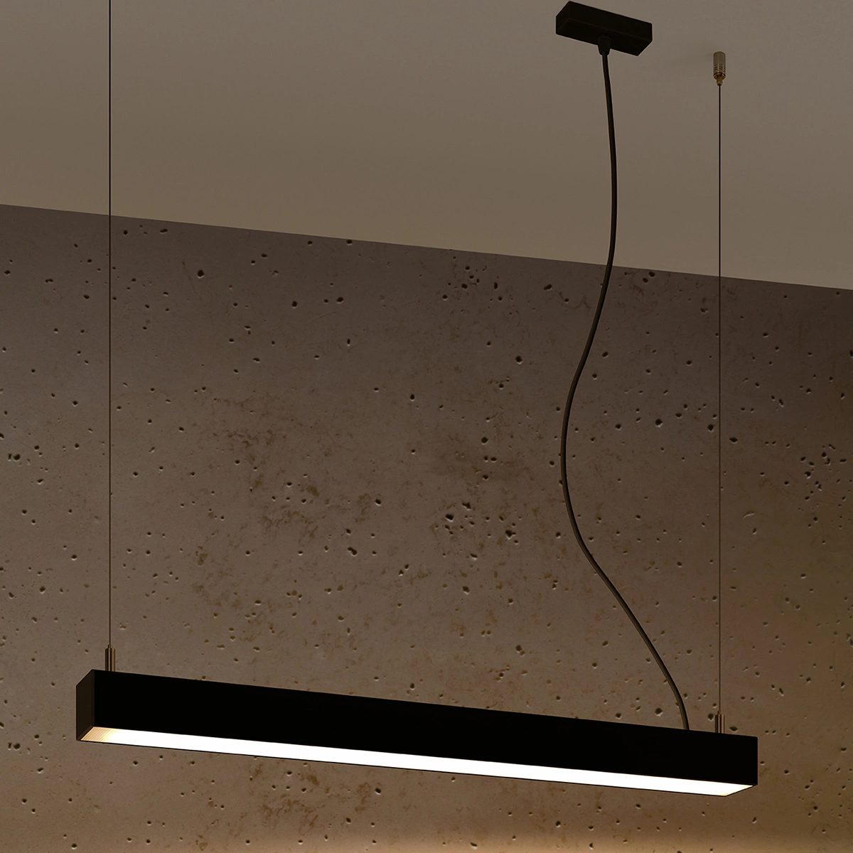 Lampa wisząca zaprojektowana jest w formie podłużnej belki. Metalowy klosz dostępny jest w trzech kolorach: białym, czarnym i szarym. Do wyboru pozostaje również długość lampy spośród trzech rozmiarów: 67, 90, 117 i 150 cm. W zestawie do dołączona jest również żarówka. W kolekcji Pinne dostępne są nie tylko lampy wiszące, ale również plafony i kinkiety, przez co łatwo będzie znaleźć pasujące dodatkowe źródła światła w razie gdyby ta lampa nie była jedynym oświetleniem przestrzeni.