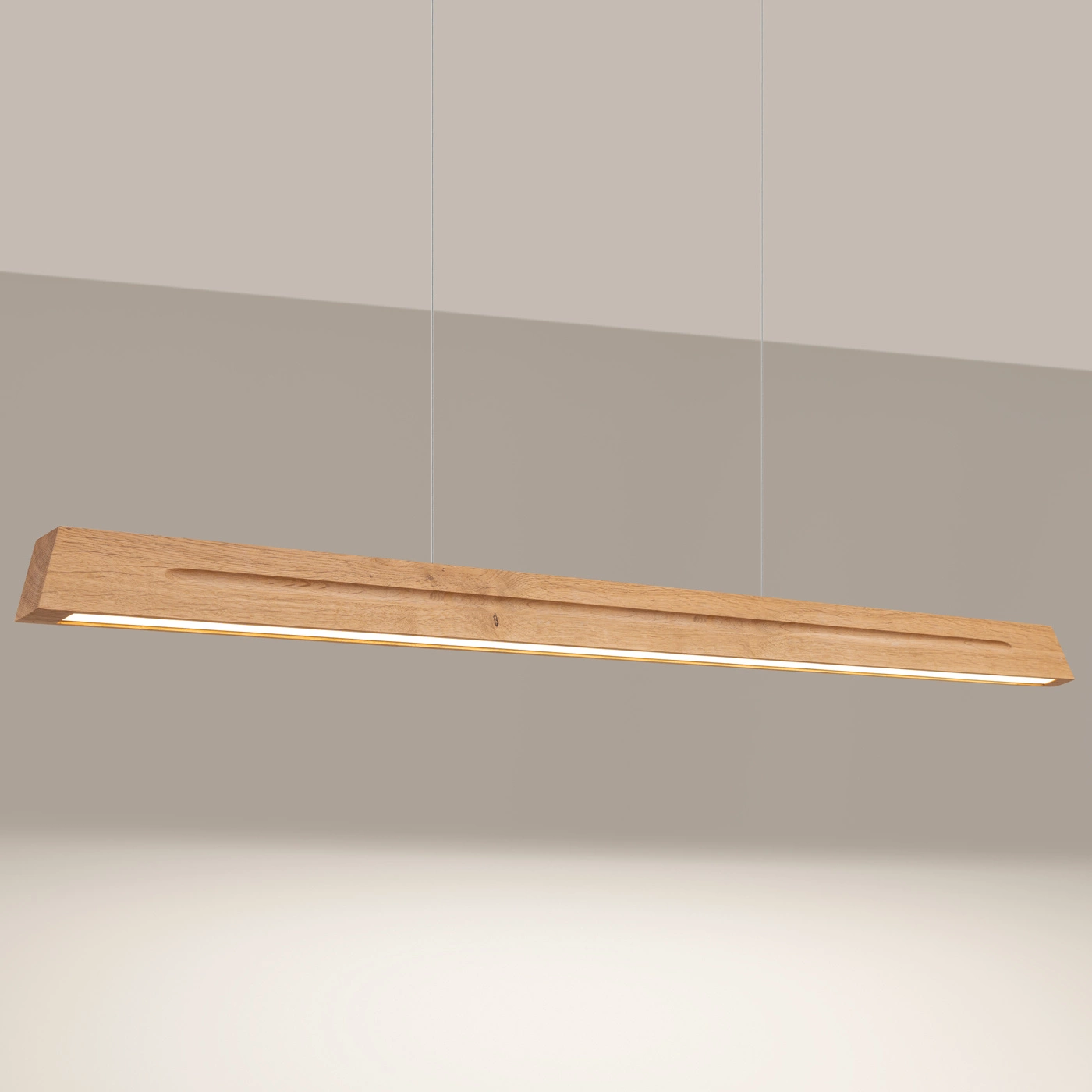 SKOG 150 LED 4000K to lampa wisząca, która łączy w sobie nowoczesny design i funkcjonalność. Wykonana z wysokiej jakości drewna w kolorze dębu, stanowi stylowe uzupełnienie wnętrza, dodając mu ciepła i przytulności. Źródłem światła jest energooszczędna żarówka LED o mocy 31W, która emituje jasne i naturalne światło o barwie 4000K. Idealna do oświetlenia jadalni, kuchni, pokoju młodzieżowego, salonu czy sypialni.