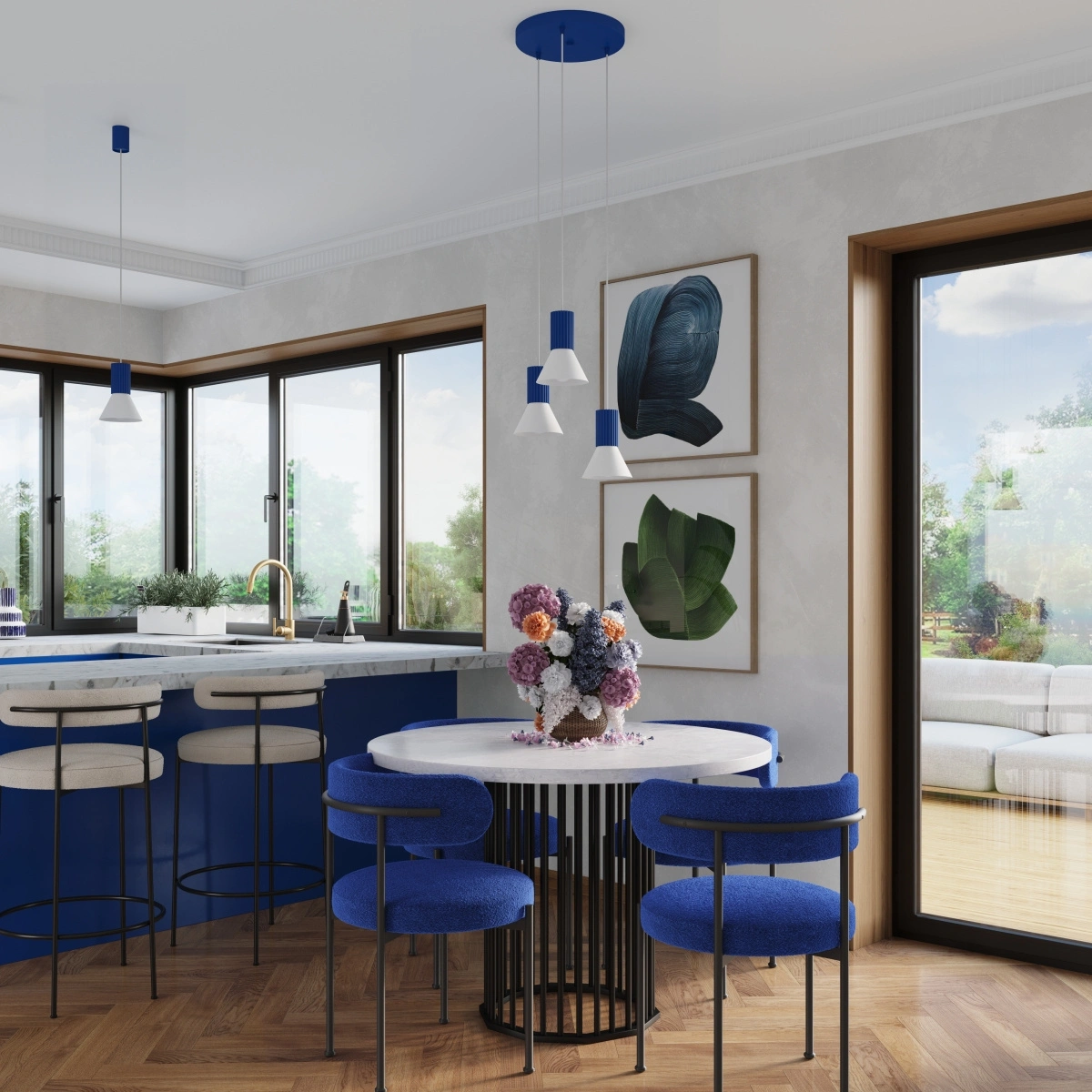 - Matowa biel i ultramaryna – wyrazisty, nowoczesny design, który ożywi każde wnętrze