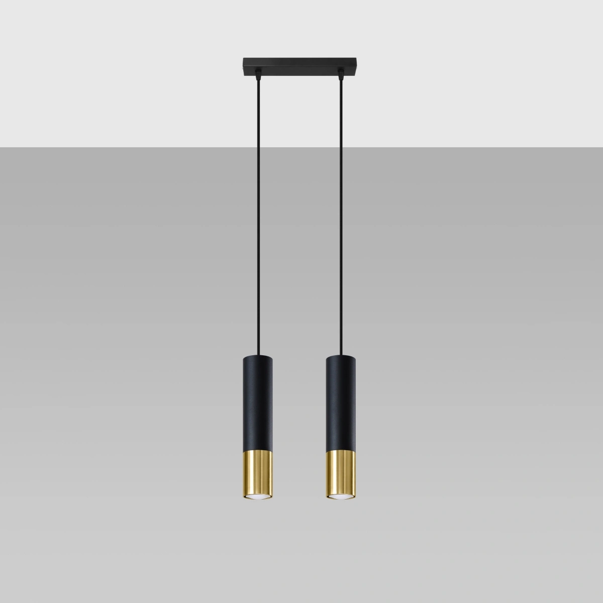 Lampa wisząca Loopez 2 marki Sollux Lighting to połączenie nowoczesnego designu z wyrazistą estetyką industrialną. Model o wysokości 90 cm i szerokości 6 cm wyróżnia się smukłą, dwupunktową formą oraz eleganckim zestawieniem czerni i złota. Wykonana z solidnej stali, doskonale sprawdzi się jako lampa nad wyspę kuchenną, lampa do salonu lub żyrandol do jadalni, zapewniając funkcjonalne i stylowe oświetlenie we wnętrzach o współczesnym charakterze.