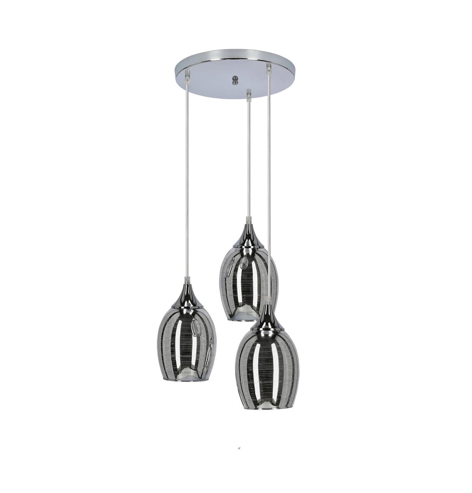 Lampa wisząca Marina talerz wyposażona jest w szklane klosze z lustrzaną powierzchnią. Dzięki temu światło jest efektywnie rozpraszane, co tworzy niezwykle efektowne oświetlenie. Poziome transparentne kreski na kloszach pełnią rolę nie tylko dekoracyjną, ale również praktyczną, zwiększając przepustowość światła.