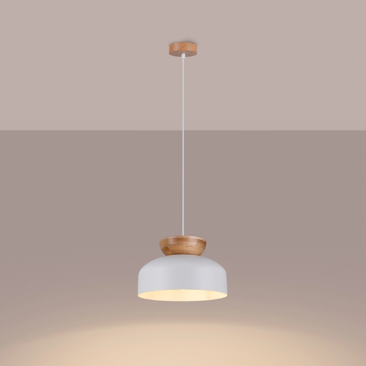 Lampa wisząca MARION biała została zaprojektowana z myślą o wnętrzach, w których liczy się harmonia i przytulność. Połączenie bieli z naturalnym odcieniem drewna nie tylko rozświetla przestrzeń, ale też podkreśla nowoczesny charakter pomieszczenia. Dzięki minimalistycznej formie, lampa doskonale wpisuje się w aranżacje salonu, jadalni, sypialni czy przedpokoju, nadając im świeżości i lekkości.