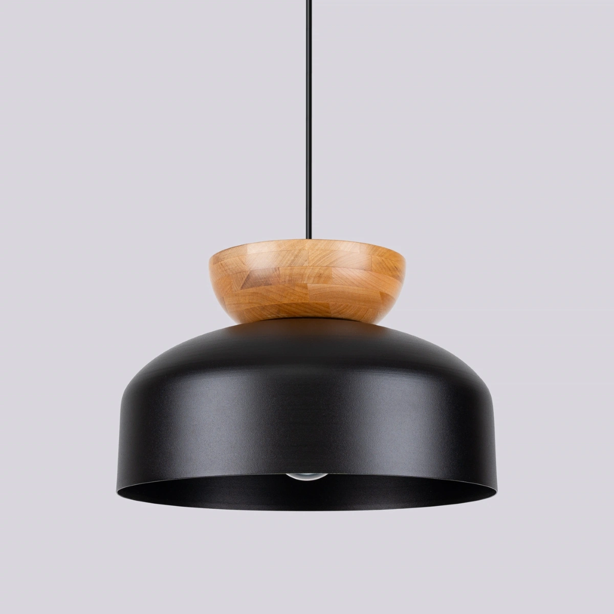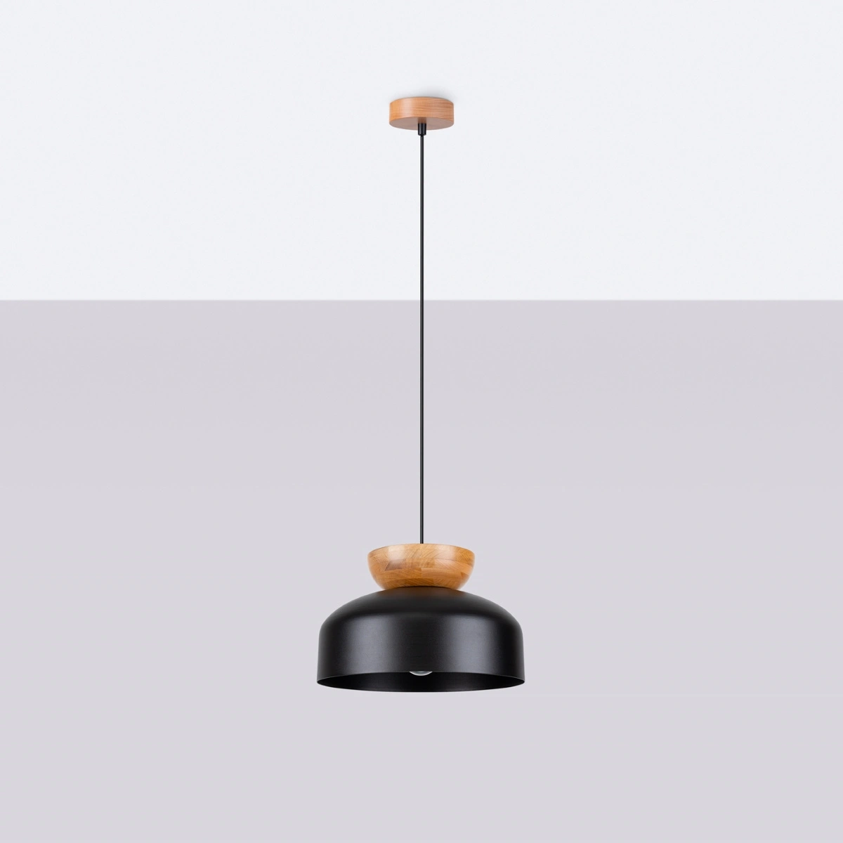 Lampa wisząca MARION marki SOLLUX LIGHTING to propozycja dla osób ceniących skandynawski styl, naturalne materiały i funkcjonalność. Model w kolorze czarnym, z okrągłym metalowym kloszem o średnicy 29,5 cm oraz detalami z drewna, doskonale sprawdzi się jako lampa nad stół w jadalni, nowoczesna lampa do kuchni lub stylowe oświetlenie do salonu. Dzięki regulowanej wysokości zawieszenia (do 130 cm) łatwo dopasujesz ją do potrzeb swojego wnętrza.