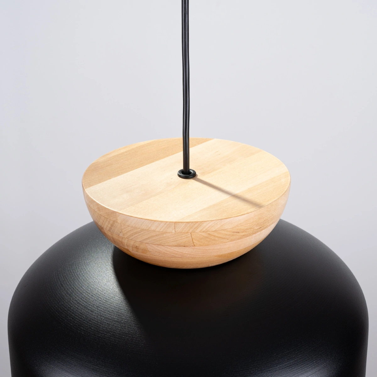 Minimalistyczna, czarna lampa wisząca MARION z drewnianą podsufitką to esencja skandynawskiego designu – połączenie prostoty, elegancji i naturalnych akcentów. Okrągły klosz wykonany z metalu zapewnia równomierne rozproszenie światła, tworząc przyjazną atmosferę zarówno nad stołem w jadalni, jak i w kuchni czy salonie. Subtelny detal z drewna wprowadza przytulność i podkreśla ponadczasowy charakter lampy.