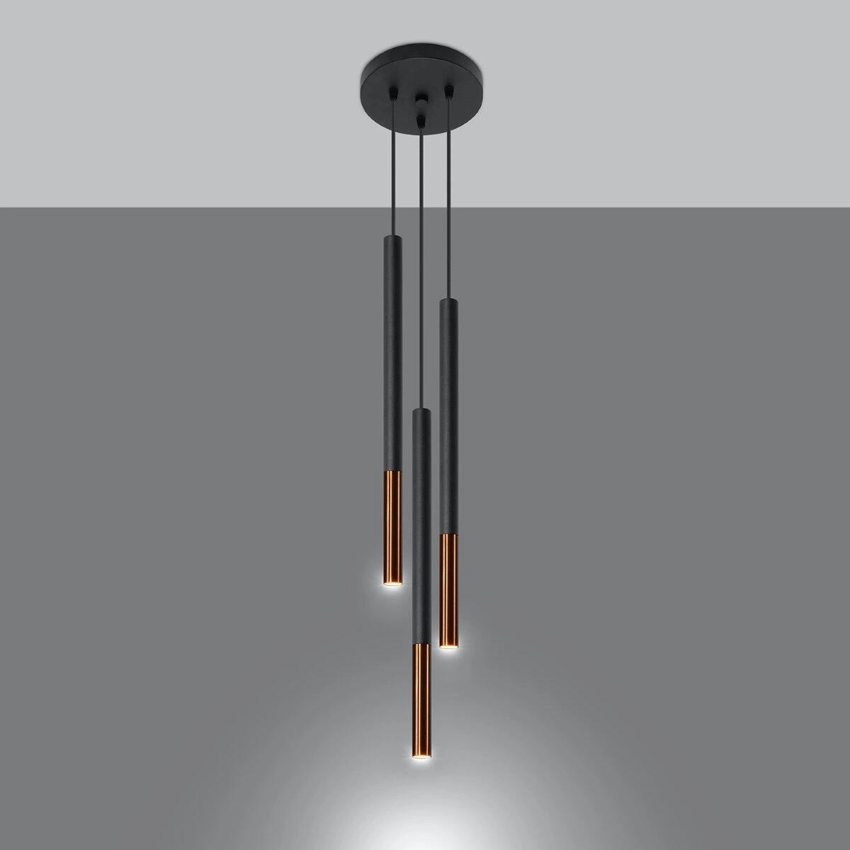 Lampa wisząca Mozaica 3-punktowa czarna miedziana do salonu kuchni jadalni nad wyspę