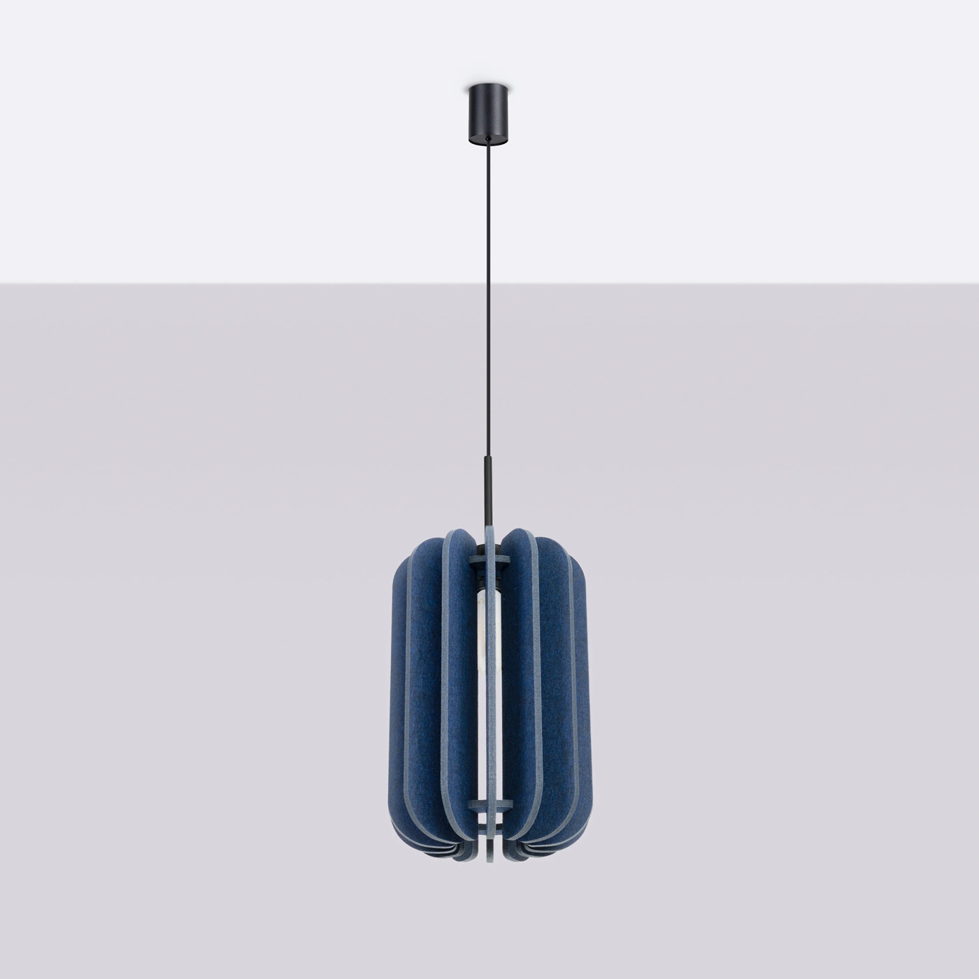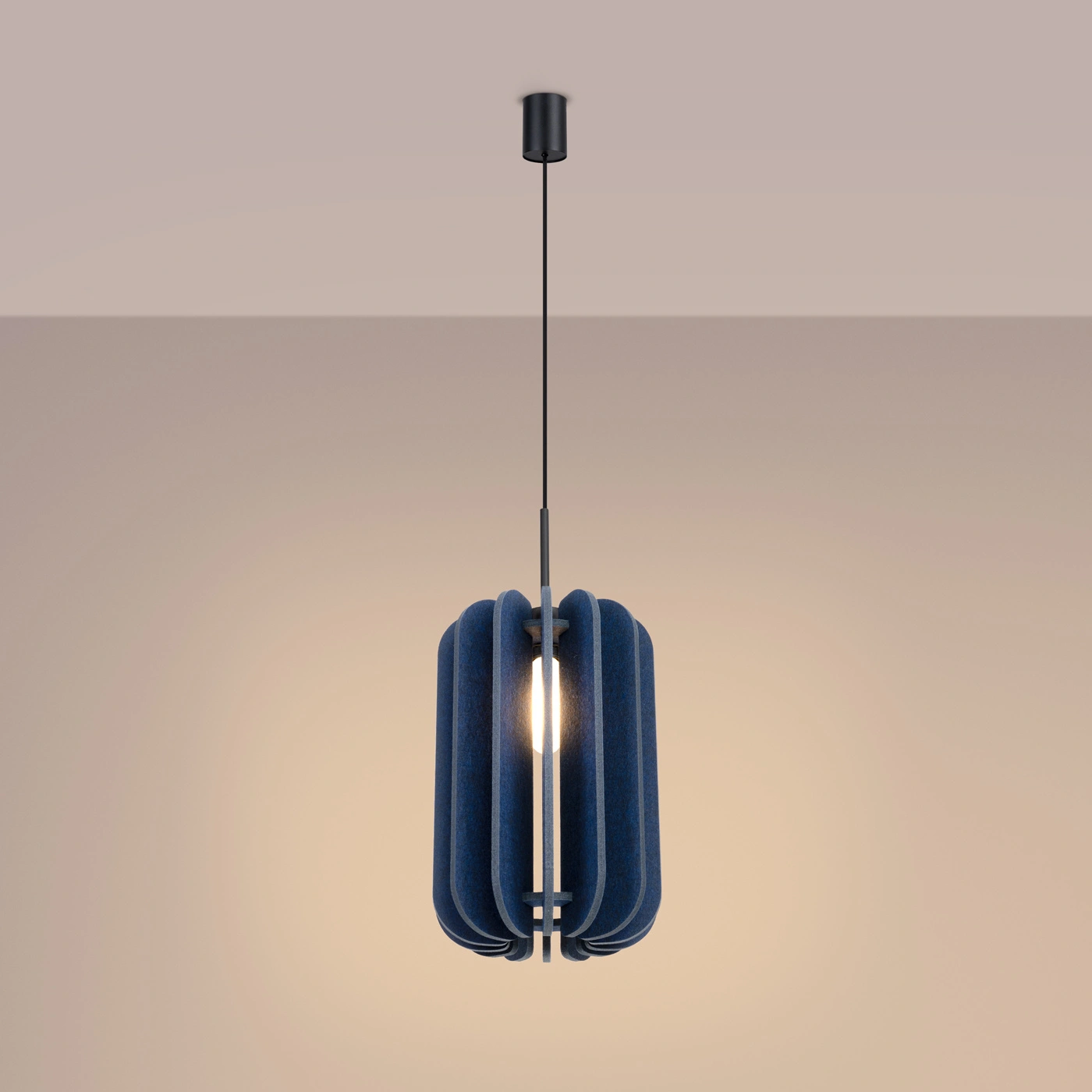Lampa wisząca MULA 27 marki SOLLUX LIGHTING to nowoczesna propozycja oświetlenia sufitowego, która wprowadza do wnętrza niepowtarzalny charakter dzięki granatowemu kloszowi wykonanemu z filcu oraz subtelnym, czarnym akcentom. Model o średnicy 27 cm i wysokości 165 cm doskonale sprawdzi się jako lampa do salonu, kuchni, jadalni czy przedpokoju. Starannie dobrane materiały – stal oraz filc – gwarantują trwałość, a minimalistyczny design podkreśla aktualne trendy w aranżacji wnętrz.