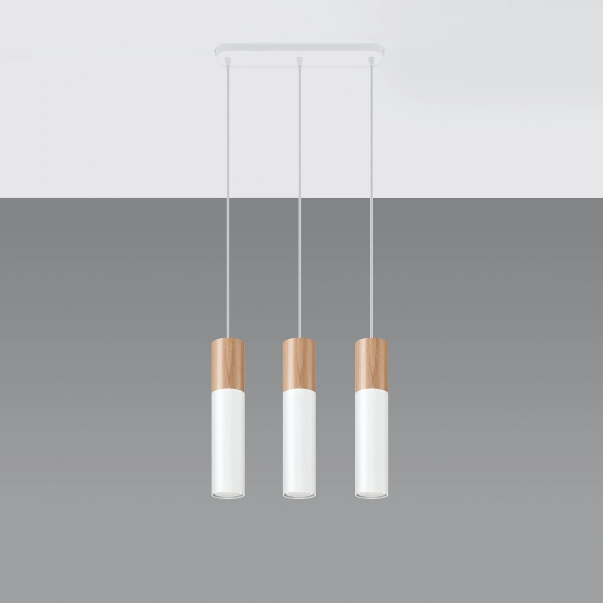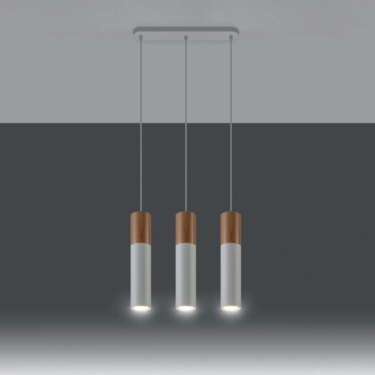 Lampa wisząca Pablo 3L marki Sollux Lighting to połączenie nowoczesnego stylu, naturalnego drewna i ponadczasowej bieli. Model składa się z trzech cylindrycznych, białych kloszy zawieszonych na minimalistycznej listwie, wykonanej z drewna i metalu. Dzięki szerokości 45 cm i regulowanej wysokości do 90 cm, ta lampa sufitowa doskonale sprawdzi się nad stołem, w salonie lub jadalni, oferując funkcjonalne, punktowe oświetlenie i subtelny, designerski akcent.