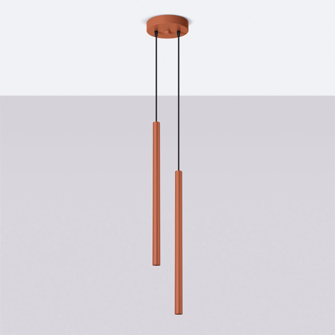 Lampa wisząca Pastelo 2 marki SOLLUX LIGHTING to nowoczesna propozycja oświetlenia sufitowego, która łączy efektowny odcień czerwieni (terracotta) z funkcjonalnością regulowanej wysokości zawieszenia. Wykonana z wytrzymałej stali, o kompaktowej szerokości 15 cm i maksymalnej wysokości 114 cm, idealnie sprawdzi się jako lampa nad stół w jadalni, żyrandol do salonu lub designerski akcent w sypialni czy gabinecie. Podwójne źródło światła zapewnia równomierne oświetlenie, a minimalistyczna forma tub doskonale wpisuje się w nowoczesne aranżacje.