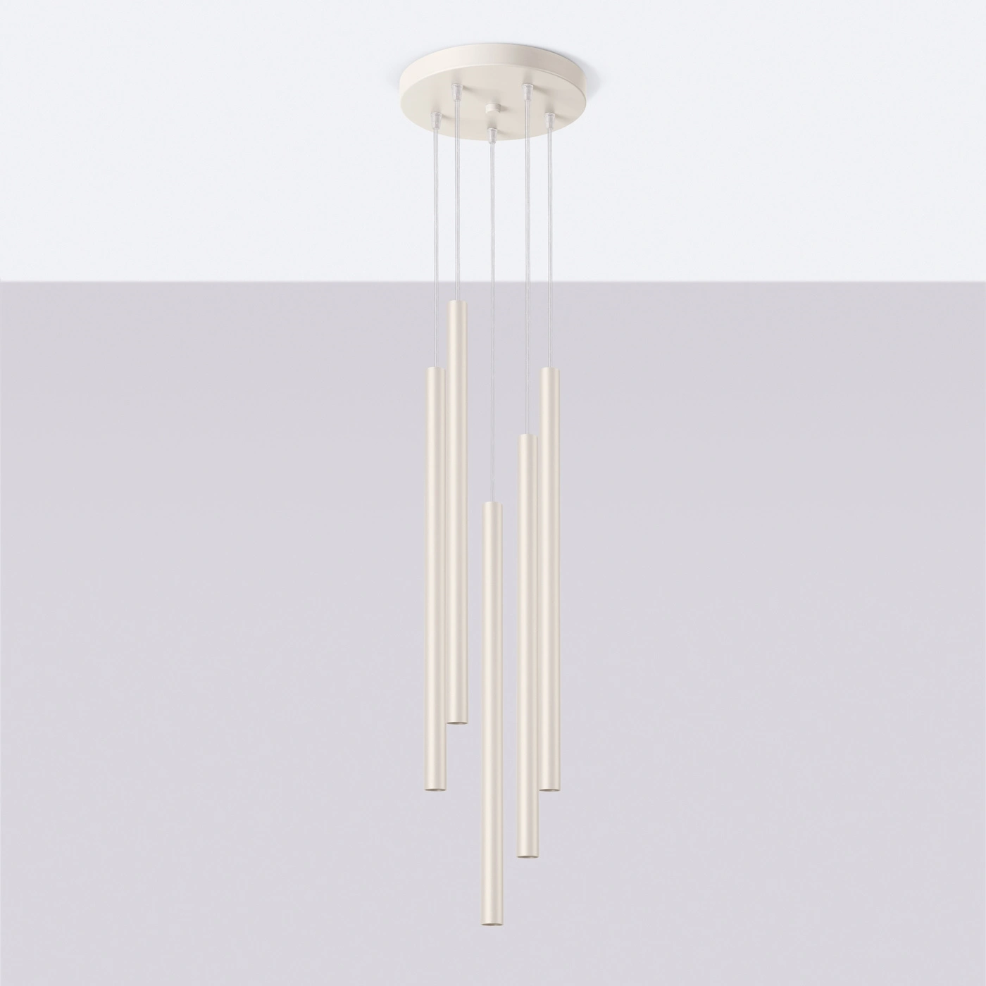 Lampa wisząca Pastelo 5P marki SOLLUX LIGHTING to nowoczesna propozycja oświetlenia sufitowego, która zachwyca beżowym wykończeniem, subtelną formą i pięcioma źródłami światła. Wykonana ze stali i wyposażona w regulację wysokości, doskonale sprawdzi się jako lampa do salonu, żyrandol do jadalni czy lampa nad stół. Jej harmonijny design oraz praktyczna funkcjonalność pozwolą Ci stworzyć wyjątkową atmosferę w każdym nowoczesnym wnętrzu.