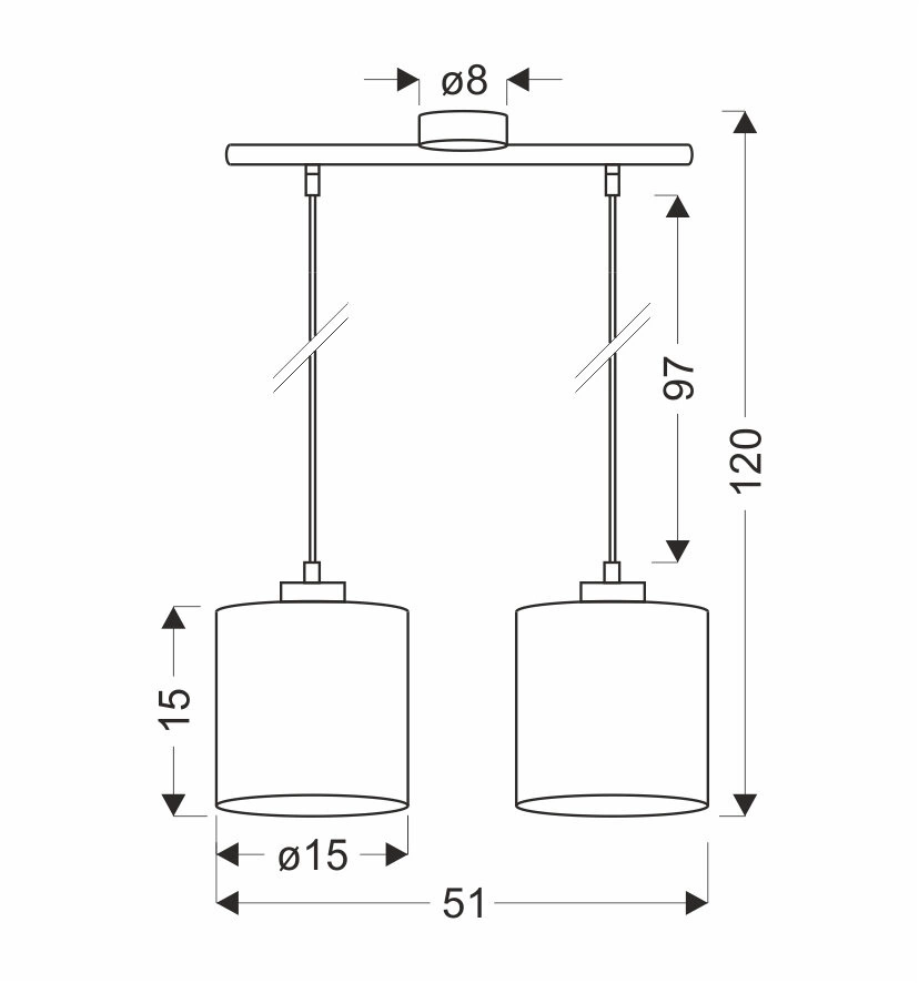 - Lampa wisząca Patti jest wyposażona w dwie oprawki E27 (maksymalnie 60W).