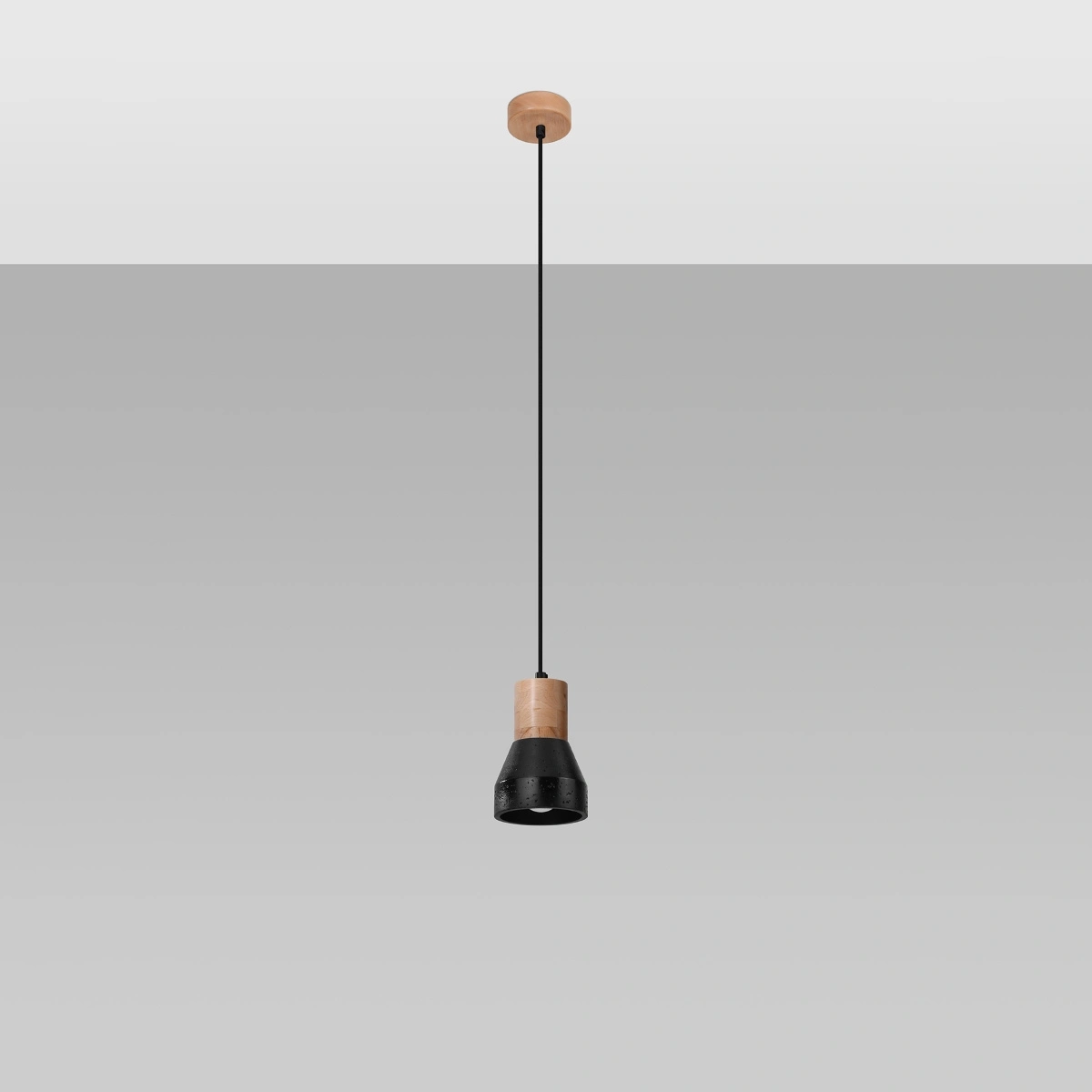 Lampa wisząca QUBIC czarna betonowo-drewniana to propozycja dla osób ceniących oryginalność i funkcjonalność. Ożywi każdą przestrzeń, zapewniając nie tylko doskonałe oświetlenie, ale też nietuzinkowy akcent dekoracyjny w Twoim domu.