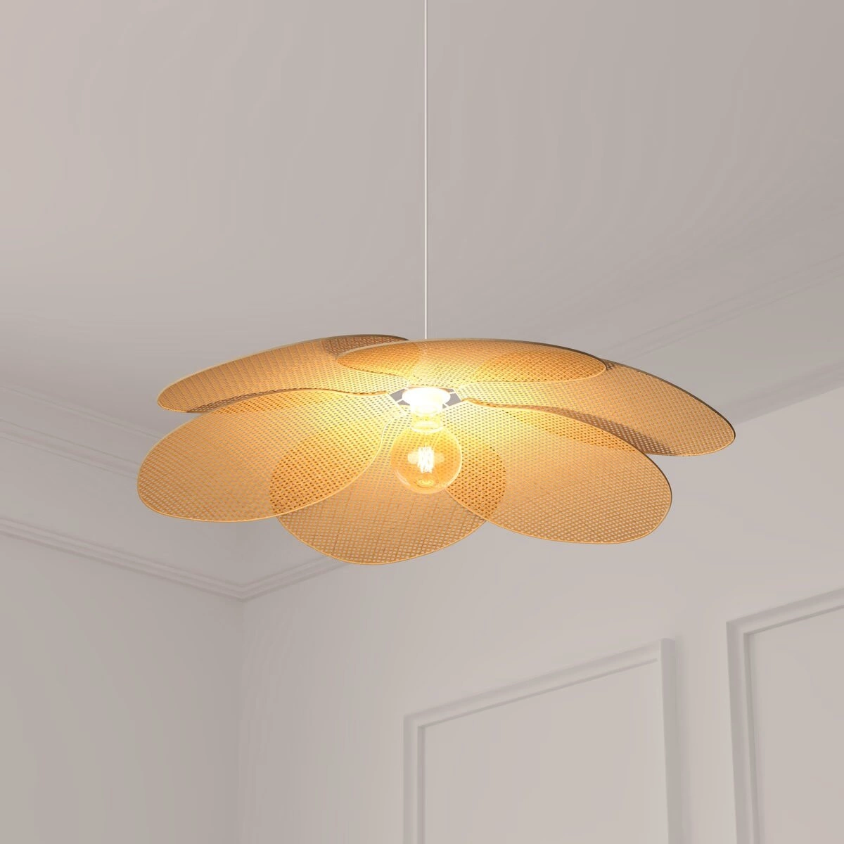 - Naturalny kolor lampy doskonale wpisuje się w różne style wnętrz - od minimalistycznego, przez nowoczesny, aż po rustykalny.