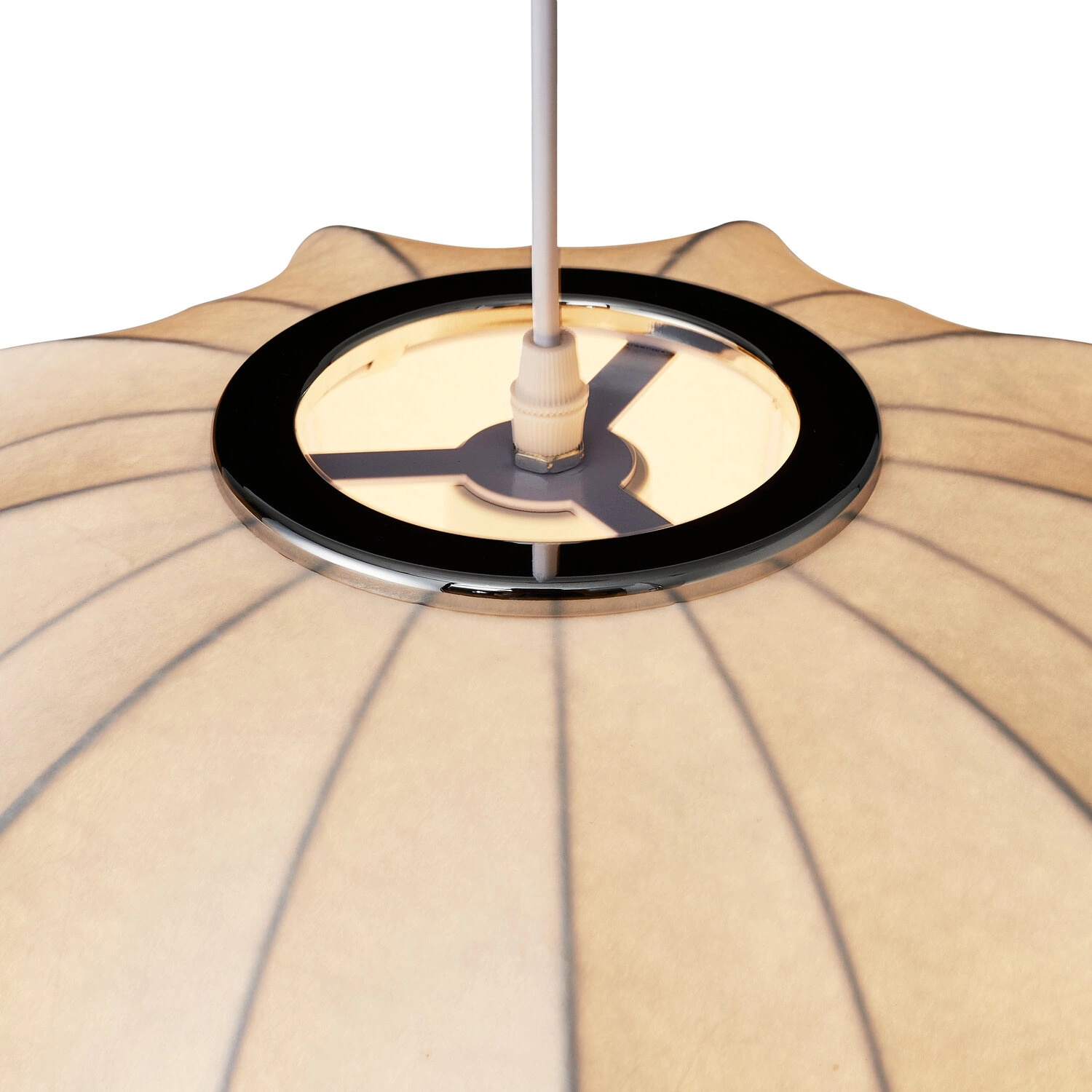 Prezentujemy Państwu lampę wiszącą SILK V-shape, która swoim niebanalnym designem wprowadzi do każdego wnętrza nutę elegancji i nowoczesności. Duży, biały klosz o jedwabnej powierzchni nie tylko efektownie prezentuje się w pomieszczeniu, ale też subtelnie rozprasza światło, tworząc przytulną atmosferę. Szczególnie atrakcyjny wygląd lampy podkreślają detale wykonane z chromowanego metalu.