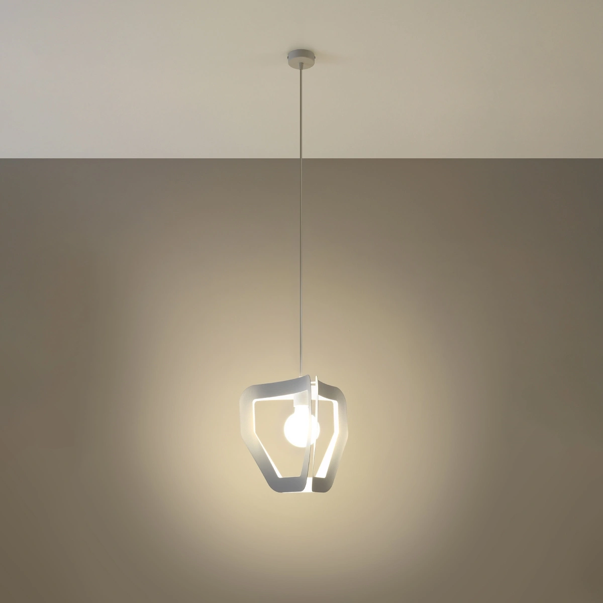 Biała, metalowa lampa wisząca Tres idealnie wpisuje się w nowoczesny, loftowy oraz industrialny styl aranżacji. Jej minimalistyczna, geometryczna forma stanowi nie tylko źródło światła, ale również designerski akcent – doskonale prezentuje się zarówno nad stołem w jadalni, jak i w roli lampy sufitowej do salonu czy kuchni. Dzięki neutralnej kolorystyce harmonijnie komponuje się z jasnymi i ciemnymi elementami wystroju, podkreślając indywidualny charakter pomieszczenia.
